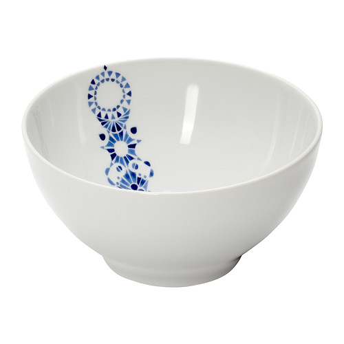 Klasické nádobí s nekonvenčním a hravým vzorem inspirovaným tradičním modrým a bílým porcelánem a ručně malovanou dlažbou. http://www.ikea.com/cz/cs/images/products/promenad-miska__0170571_PE324457_S4.JPG PROMENAD Miska, bílá, tm.modrá 002.096.36 IKEA 79,-