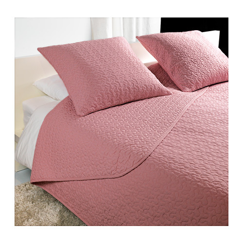 Prošívaný přehoz a povlak na polštář; extra jemné. Povlak polštáře se skrytým zipem; snadno sundáte a vyperete. Jednoduše se přemisťuje a skladuje, protože balení slouží i jako úložná taška. http://www.ikea.com/cz/cs/images/products/alina-prehoz-a--povlaky-na-polstar__0148831_PE291177_S4.JPG ALINA Přehoz a 2 povlaky na polštář, růžová 602.114.53 IKEA 1 990,-