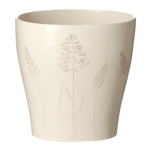 Glaseret indvendig. Gør urtepotteskjuleren vandtæt. http://www.ikea.com/dk/da/images/products/nojd-urtepotteskjuler__0114574_PE267093_S4.JPG NÖJD Urtepotteskjuler, oval, mønstret beige 101.557.27 IKEA 39.-/ stk.