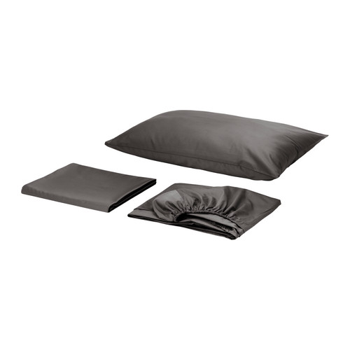 Sateen-woven bed linen in cotton is very soft and pleasant to sleep in, and has a pronounced luster that makes it look beautiful on your bed. The combed cotton gives the bed linen an extra smooth and even surface which feels soft against your skin. Fits mattresses with a thickness up to 13" since the fitted sheet has elastic edging. http://www.ikea.com/us/en/images/products/gaspa-sheet-set-gray__0120411_PE276981_S4.JPGGÄSPA Sheet set, dark grayhttp://www.ikea.com/us/en/catalog/products/40211091/402.110.91IKEA$16.99