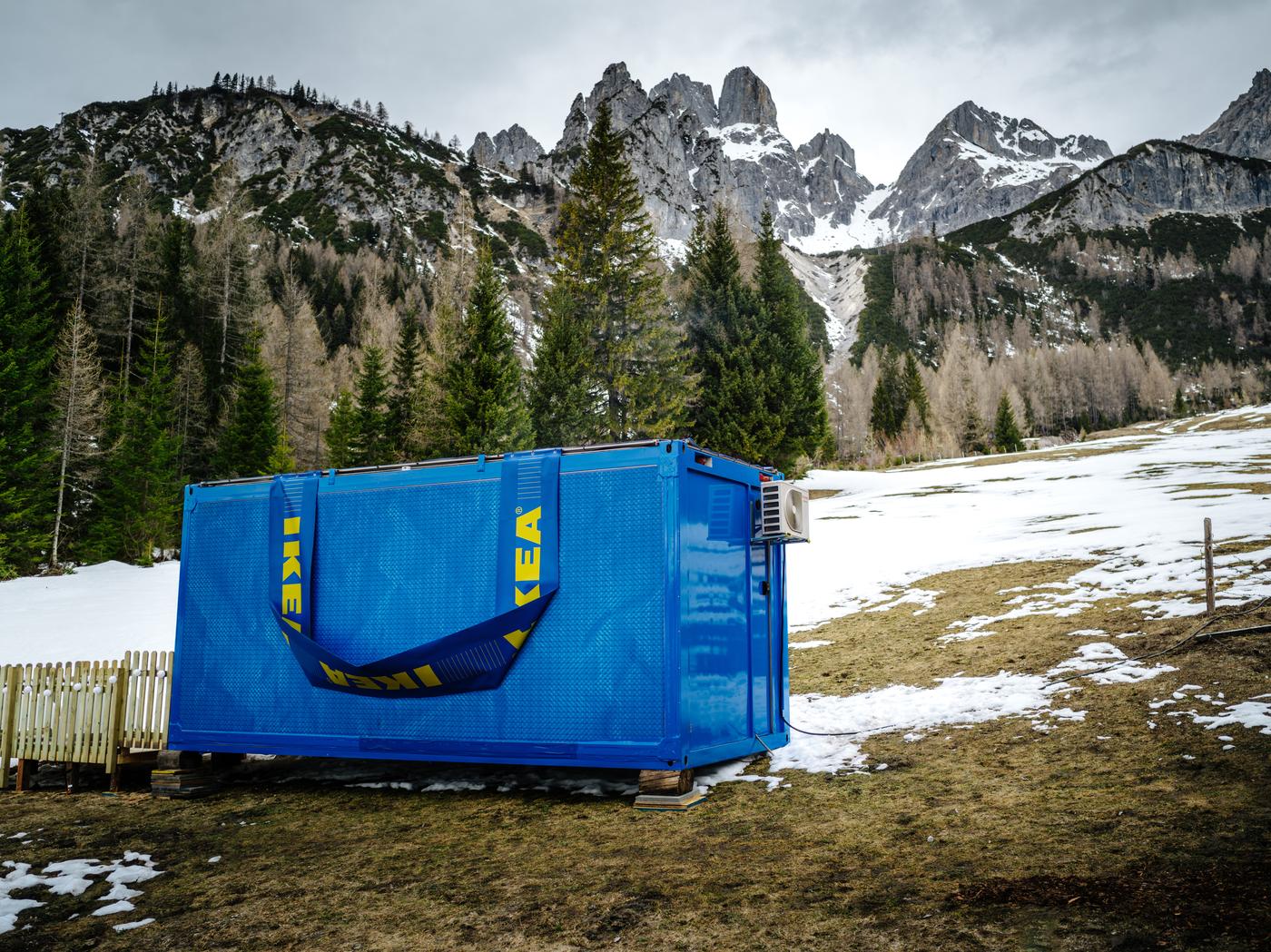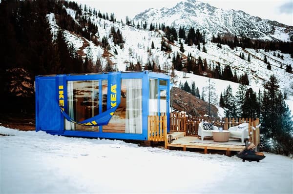 Die IKEA Schlummertasche, ein kompakter Raum mit durchdachtem Design und imposanter Glasfront, bietet ausgewählten Gästen die Möglichkeit, inmitten der Salzburger Alpen – genauer gesagt in der Unterhofalm in Filzmoos – eine unvergessliche Nacht zu verbringen. Trotz des begrenzten Platzes wurde der Container so gestaltet, dass er sowohl einen erholsamen Schlaf als auch gemütliche Stunden mit Spielen oder Essen ermöglicht.