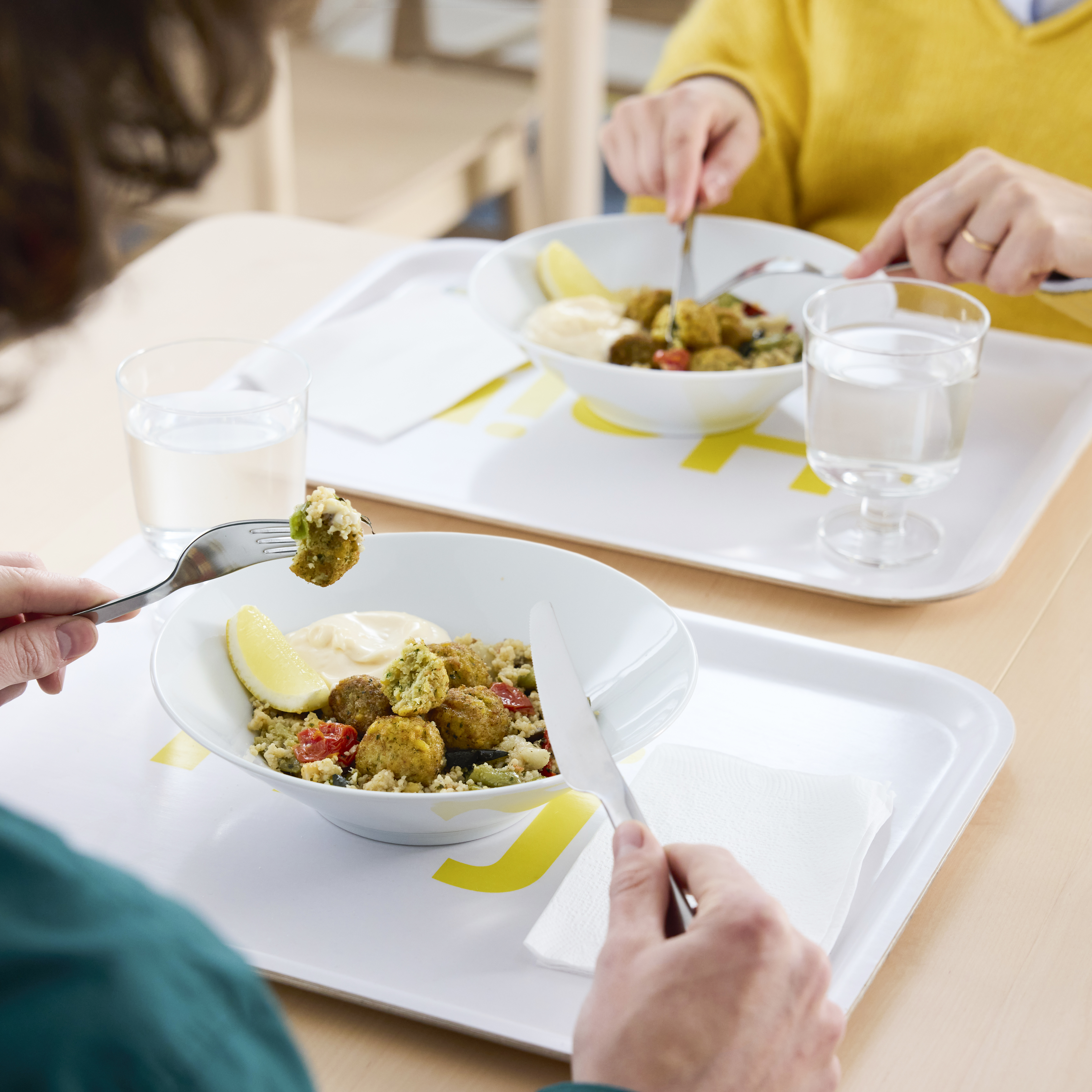 Ergänzend dazu bringt IKEA die neuen FALAFELBULLAR ins Restaurant. Sie bestehen unter anderem aus Kichererbsen, Zucchini, Zwiebeln, Weizenmehl und Gewürzen wie Petersilie, Kreuzkümmel, Knoblauch und schwarzem Pfeffer. Außen knusprig und innen saftig stehen Geschmack und Textur im Mittelpunkt. Serviert werden die FALAFELBULLAR mit Couscous, Gemüse und Aioli. Im Restaurant ersetzen die FALAFELBULLAR die bisherigen Gemüsebällchen (GRÖNSAKSBULLAR). Die VÄXTBULLAR (Fleischlosbällchen) bleiben weiterhin Teil des Restaurantangebots. Im Schwedenshop sind sowohl die Gemüsebällchen (HUVUDROLL) als auch die VÄXTBULLAR (Fleischlosbällchen) weiterhin erhältlich. Zum Start sind die FALAFELBULLAR ausschließlich im Restaurant verfügbar, eine Einführung im Schwedenshop ist zu einem späteren Zeitpunkt geplant.