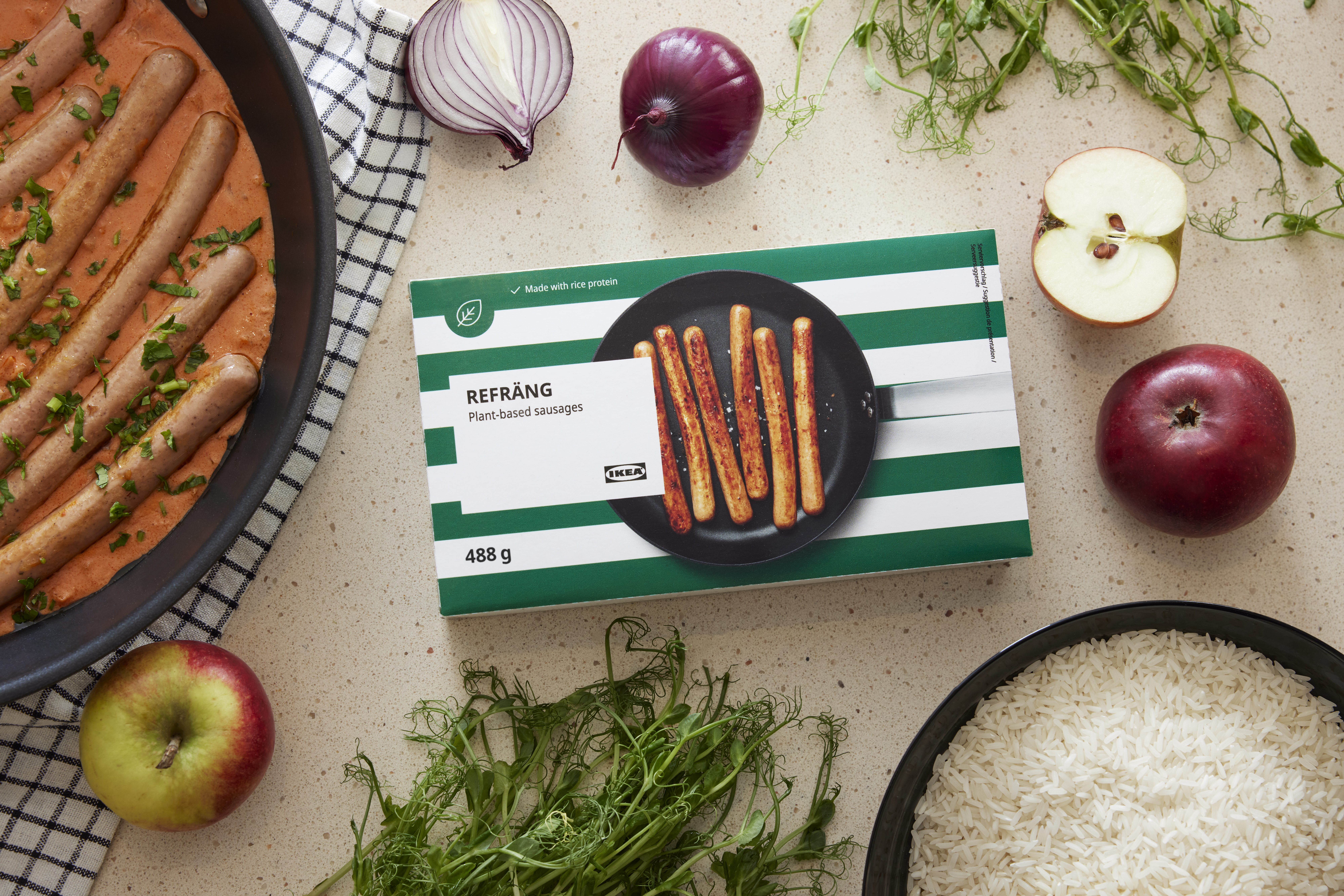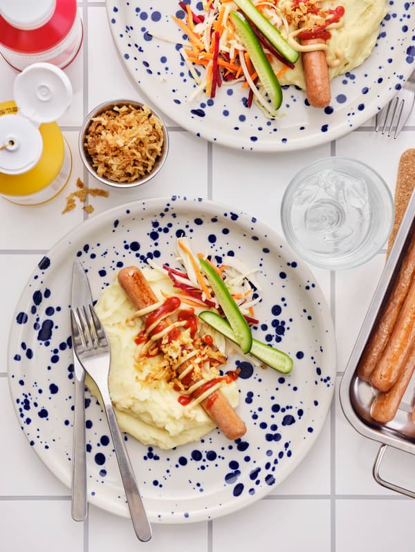 Die pflanzlichen REFRÄNG Würstchen aus Reisprotein zeichnen sich durch eine dünne Hülle aus Seetang-Extrakt aus, die ihnen eine knackige Konsistenz verleiht. Mit einem milden Rauchgeschmack und der ausgewogenen Süße von Äpfeln und Karotten bieten sie ein geschmackvolles Erlebnis – und das ganz ohne Fleisch. Die Würstchen können direkt aus dem Gefrierfach in die Pfanne oder den Ofen gegeben werden – oder lassen sich auf dem Grill zubereiten.IKEA entwickelt fortlaufend fleischlose Alternativen der Klassiker im Food-Sortiment und bietet zudem die pflanzliche Variante immer zu einem niedrigeren Preis als die entsprechenden Fleischgerichte an. Durch die erschwinglicheren pflanzlichen Optionen ermöglicht IKEA so vielen Menschen wie möglich, sich pflanzlich und nachhaltiger zu ernähren. So wird der Plant Dog (REFRÄNG, 488g) im Schwedenshop in Österreich um 5,99 Euro (€ 12,27/kg) verkauft, der Veggie Dog (KORVMOJ, 460g) um 4,49 Euro (€ 9,76/kg) und fleischhaltige Hot Dogs (880g) um 11,99 Euro (€ 13,63/kg).