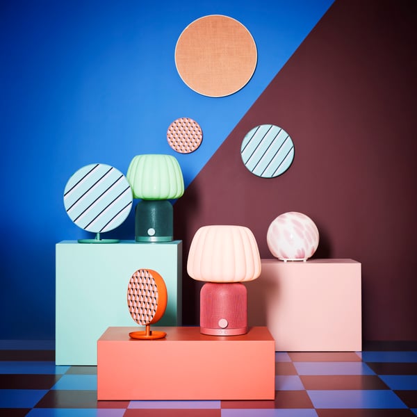 Im Mittelpunkt stehen die neuen SOLSKYDD Bluetooth-Lautsprecher in drei Größen, die KULGLASS Lampenlautsprecher sowie eine neu interpretierte FADO Tischleuchte in frischer Farbgebung. Ergänzt wird die Zusammenarbeit durch bereits erhältliche Produkte wie neue VAPPEBY-Farbvarianten und die farbig geflochtenen Ladekabel SITTBRUNN, RUNDHULT und LILLHULT.