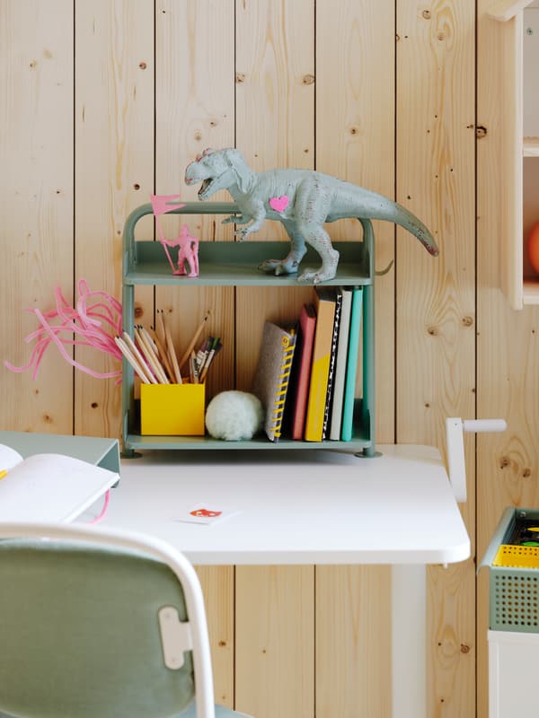 Lernen fällt leichter, wenn das Umfeld den eigenen Bedürfnissen entspricht. Am besten funktioniert das mit ein paar Kleinigkeiten, die Großes bewirken: ein Regal, eine Schreibtafel zum Zeichnen oder einer Ecke für Pausenspiele mit den Dinos. Die SKÅDIS Lochplatte ist nicht nur ideal für den Arbeitsplatz zu Hause, sondern auch genauso praktisch im Bad, Flur oder in der Küche – so sind kleine Dinge schnell griffbereit. Zudem kann das SKÅDIS Zubehör ergänzt werden, um so die beste Aufbewahrung für den individuellen Bedarf selbst zu gestalten.
