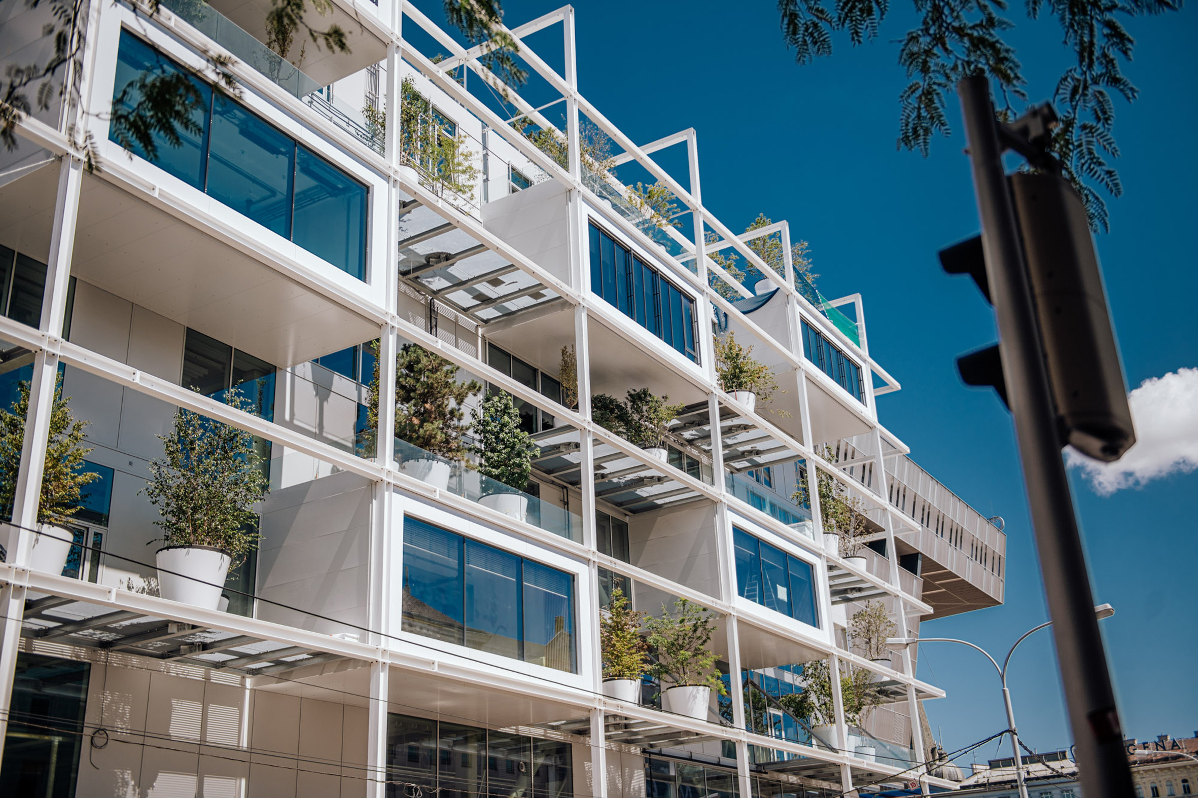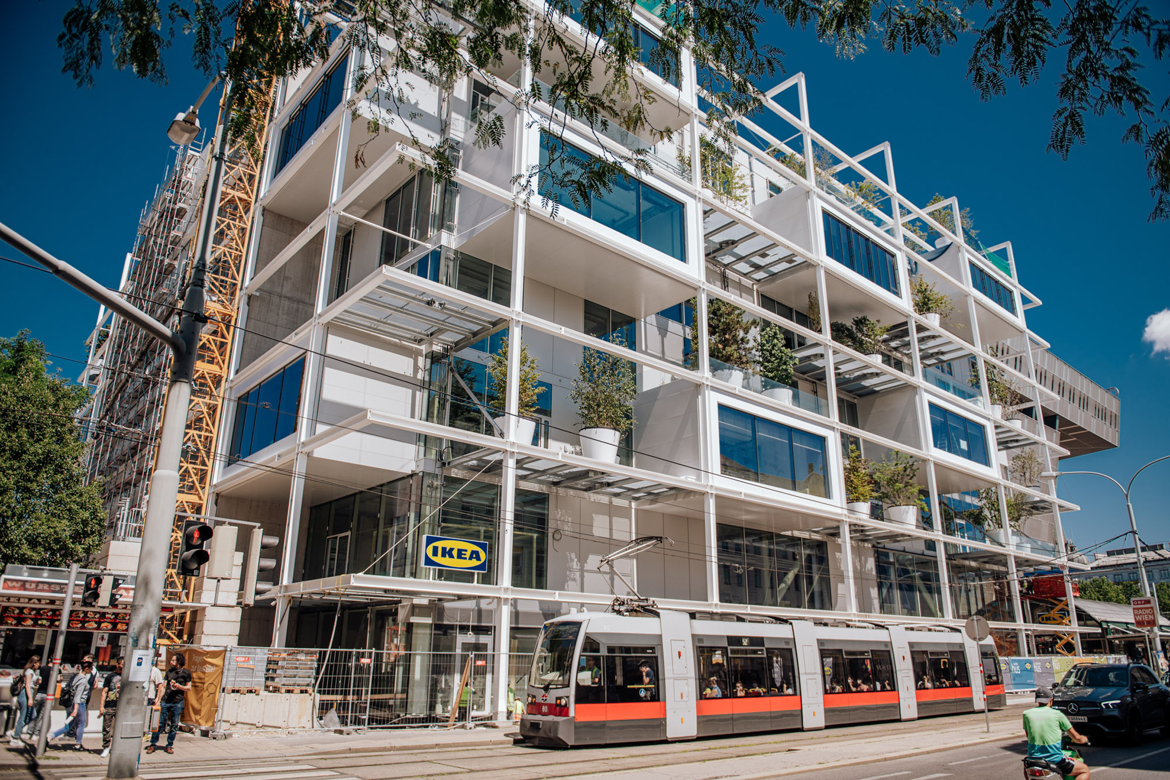 Das Gebäude des neuen IKEA Stores ist ein echter Vorreiter in Sachen Nachhaltigkeit: Mit insgesamt 160 Bäumen und Sträuchern an allen vier Fassadenseiten und auf dem Dach sticht es nicht nur optisch heraus, sondern leistet damit auch einen positiven Beitrag zum Mikroklima im Grätzl. An einem Hitzetag kann die Nachbarschaft dank der Begrünung um bis zu -1,5°C abgekühlt werden. Dafür wurde das Gebäude bereits mit dem GREENPASS Platinum Zertifikat ausgezeichnet.