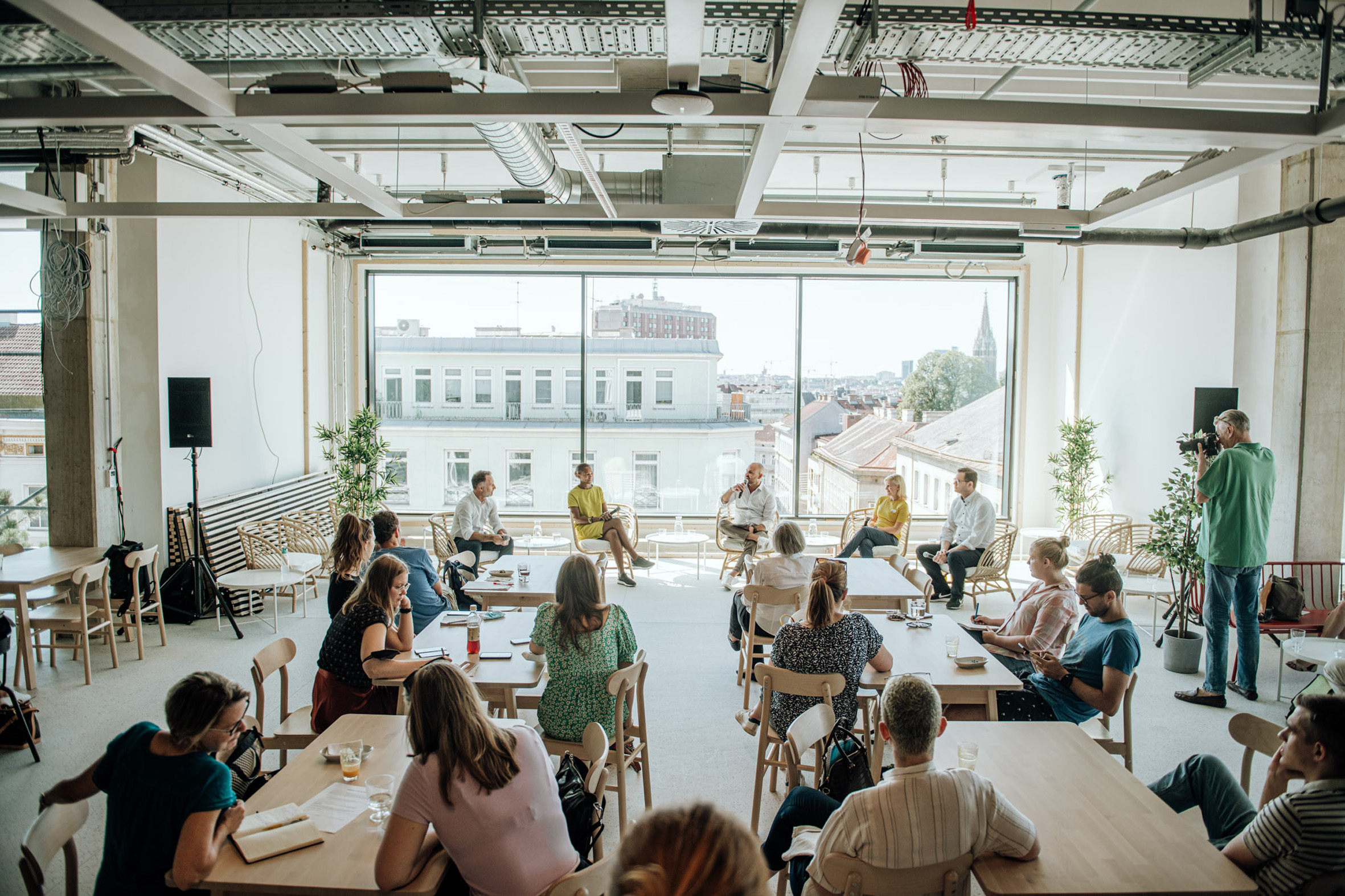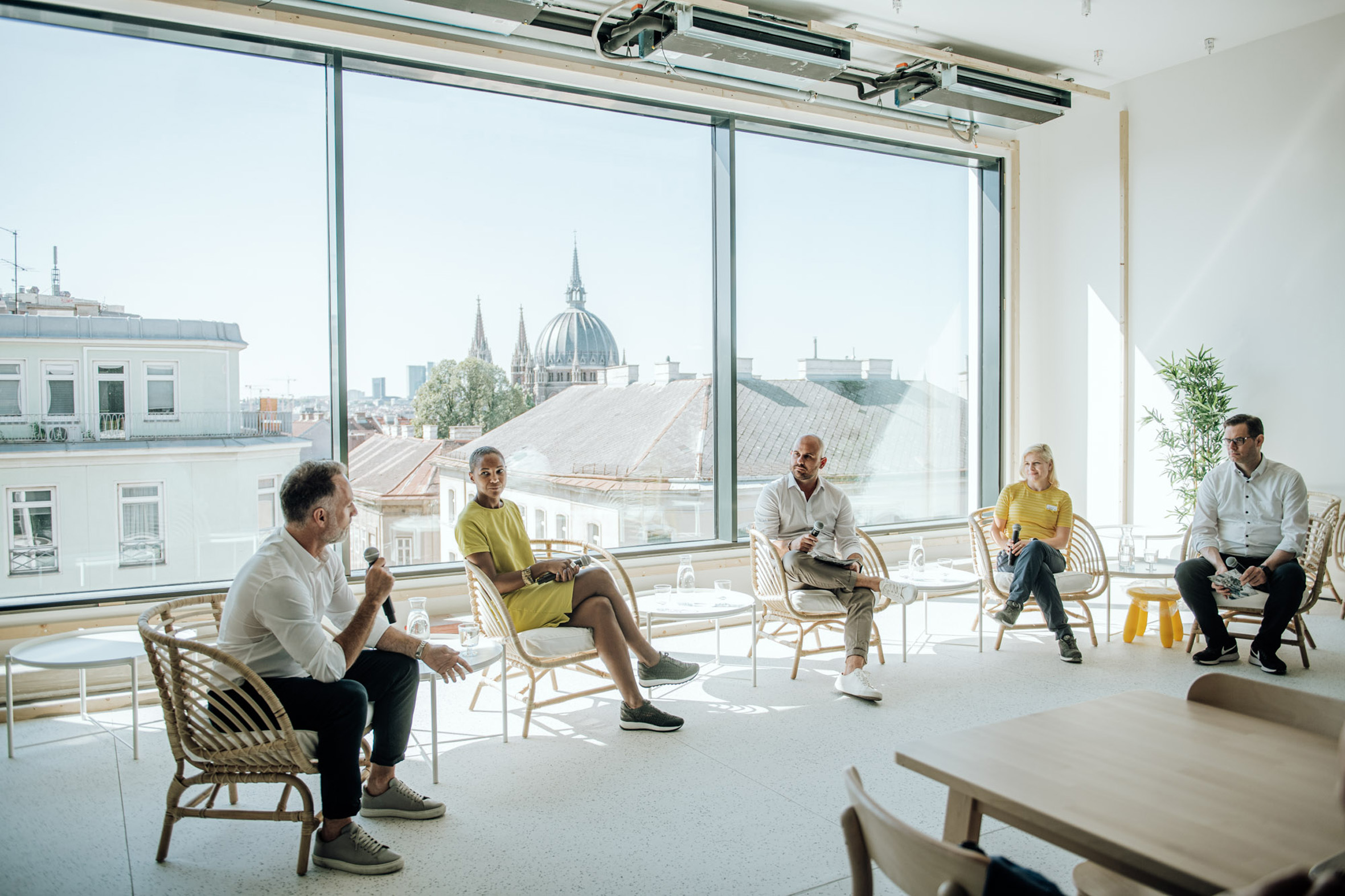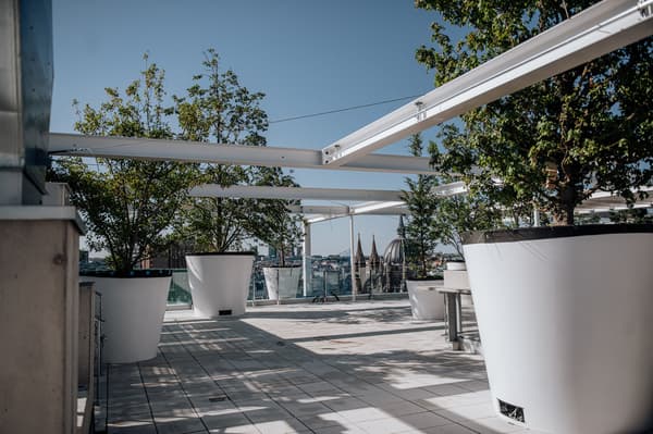 „Die Fassaden- und Dachbegrünung ist entsprechend unserer Wurzeln von den schwedischen Wäldern und National Parks inspiriert“, erklärt Maimuna Mosser. Freiflächen und lichtdurchflutete Bereiche am Gebäude bieten auf allen Ebenen ausreichend Platz für Vogelnester, Bienenstöcke und weitere begrünte Fassadenelemente. Zusätzlich wurden am Gebäudedach Photovoltaikanlagen installiert, die eine Leistung von 88 kWp haben, insgesamt 13 Tonnen wiegen und rund 800 m² der gesamten Dachfläche überdecken. Neben der umweltfreundlichen Energiegewinnung haben die Anlagen einen weiteren Vorteil: Die Glaspanele spenden Schatten und sorgen auch im Sommer für ein angenehmes Verweilen auf der Dachterrasse.