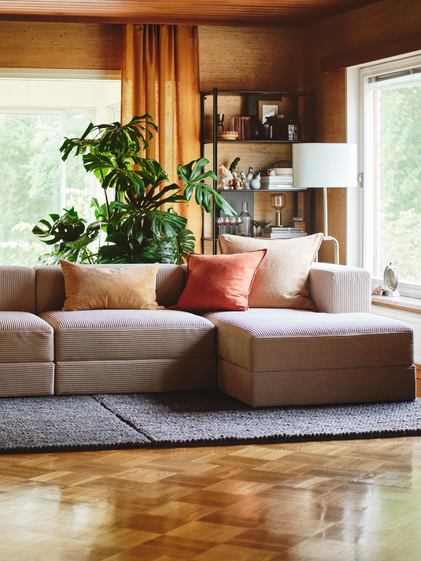 Here, you should also decide on the shape of the sofa. Do you have enough room for an L-shaped or a U-shaped sofa? Or should you go for a rectangular 2- or 3-seater?