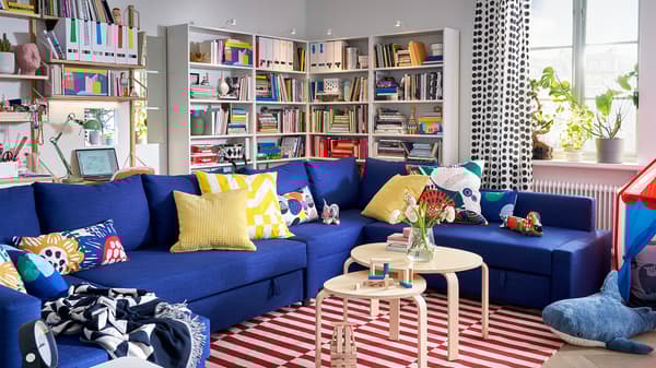 The FRIHETEN series lets you turn your living room (or any room) into a cosy sleeping spot in a flash. The secret? A bed mechanism that easily transforms the sofa into a bed for two. With roomy storage space underneath, you can store away bedding during the day while keeping it nearby for nighttime.