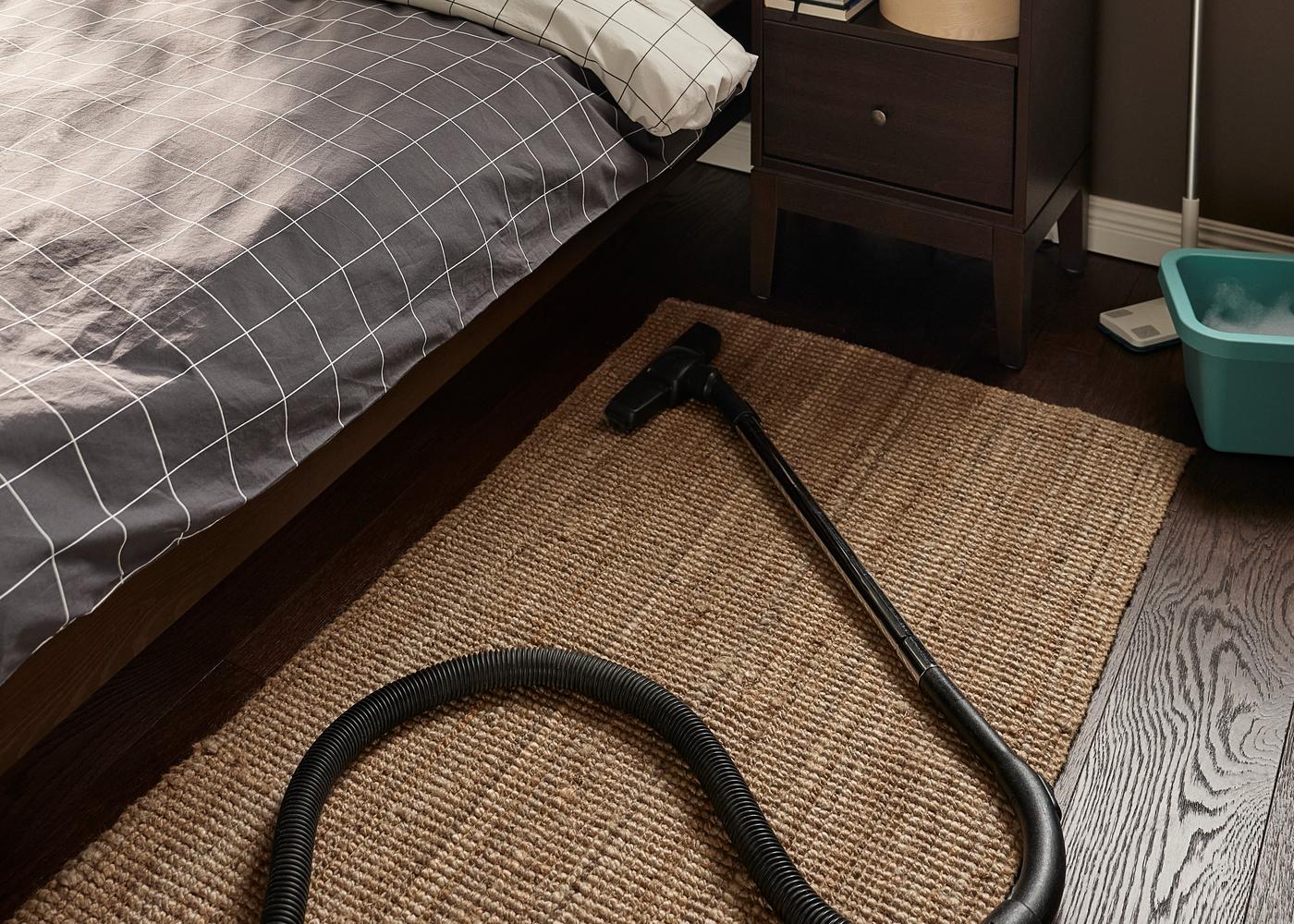 Vacuuming often goes a long way. If you have a rug with a long pile, turn it upside down from time to time to get rid of dust and dirt that the vacuum cleaner has missed or can’t reach. Use the flat nozzle, not the brush, and vacuum at low power. Also vacuum the underside from time to time – and if the rug has piles, finish by vacuuming in the direction that the piles lie.