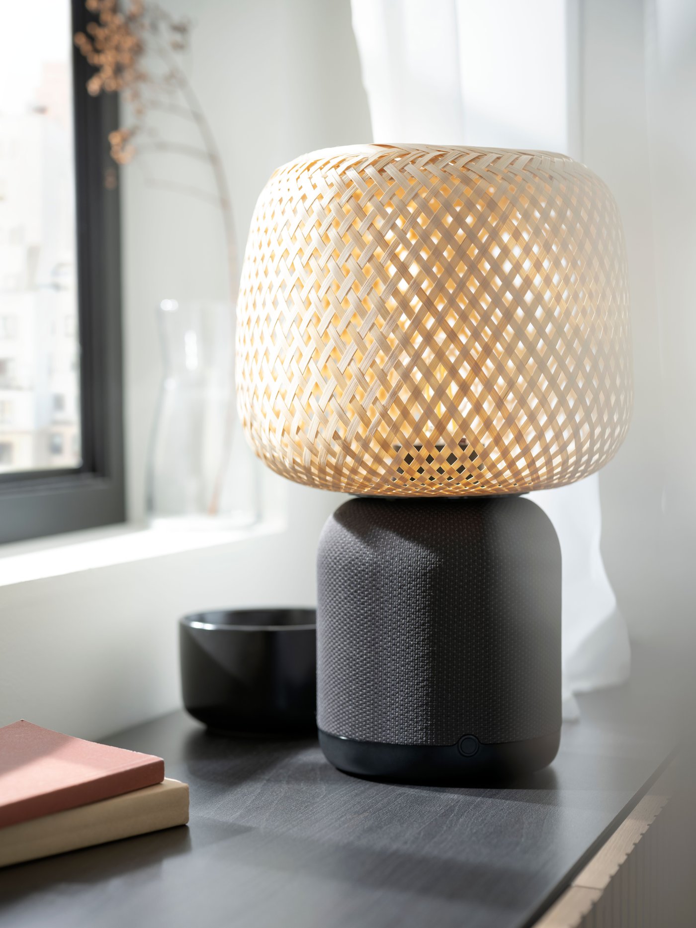 Take a look at our SYMFONISK collection, for example, built and designed in collaboration with Sonos for home automation. The Wi-Fi-enabled lamp, with built-in speakers, combines high quality sound with soft lighting, meaning one less cord, one less power socket, and one less device.