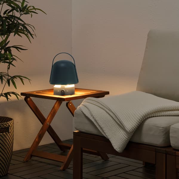 Nejnovějším členem řady Bluetooth reproduktorů IKEA je VAPPEBY, přenosná lampa s reproduktorem, která vám bez problému umožní vzít si hudbu i ven. Je dobíjecí, má vestavěnou LED žárovku se dvěma různými režimy svícení a vydává prostorový 360° zvuk. Abyste měli jistotu, že bude fungovat i v nepříznivém počasí, splňuje navíc standard IP65, což znamená, že výrobek je odolný proti prachu a stříkající vodě. Díky designu inspirovanému lucernou a držadlu, které hezky padne do ruky, může být praktickým společníkem doma i na cestách.