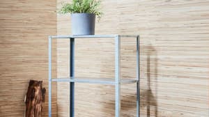 Las estanterías HYLLIS son de acero galvanizado, por lo que puedes utilizarlas perfectamente en tu terraza. ¿Has visto nuestro kit de estantería HYLLIS con funda impermeable?