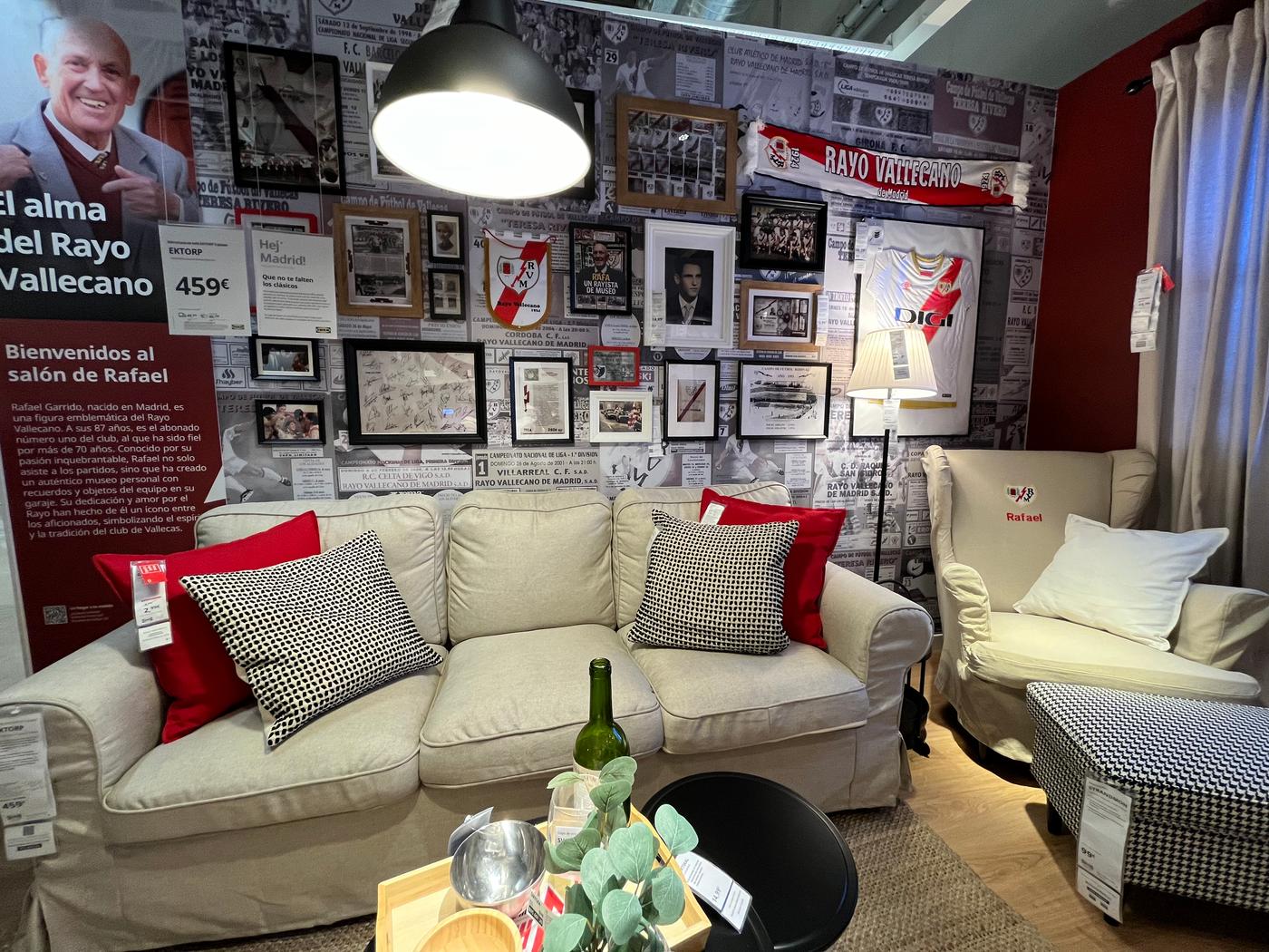 En el contexto de la celebración del del centenario del Rayo Vallecano de Madrid y con el objetivo de estar cada vez más cerca de los vallecanos, IKEA ha co-creado el salón que cualquier seguidor del club querría tener. En colaboración con Rafael Garrido, abonado número 1 del Club e inspirándose en su museo, IKEA ha dedicado un rincón de su tienda especialmente diseñado para los seguidores del Rayo, con la franja roja como protagonista.