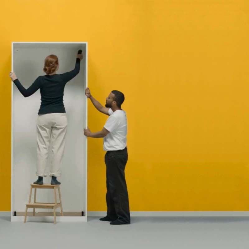 The PAX wardrobe is our long-time favourite and is designed for durability and long-term use. The redesigned foldable frame includes a pre-glued, one-piece back and side panels, and the rest of the frame pieces use wedge dowel fittings to connect. The new PAX requires fewer fittings and less time for assembly, and makes disassembly possible and easier. It reduces the risk of damage and has been tested for tool-free assembly, disassembly, and reassembly (up to 10 times). The foldable frame is designed with platform thinking, and its size, form, etc. is compatible with the previous version of PAX wardrobes, doors and interior fittings.