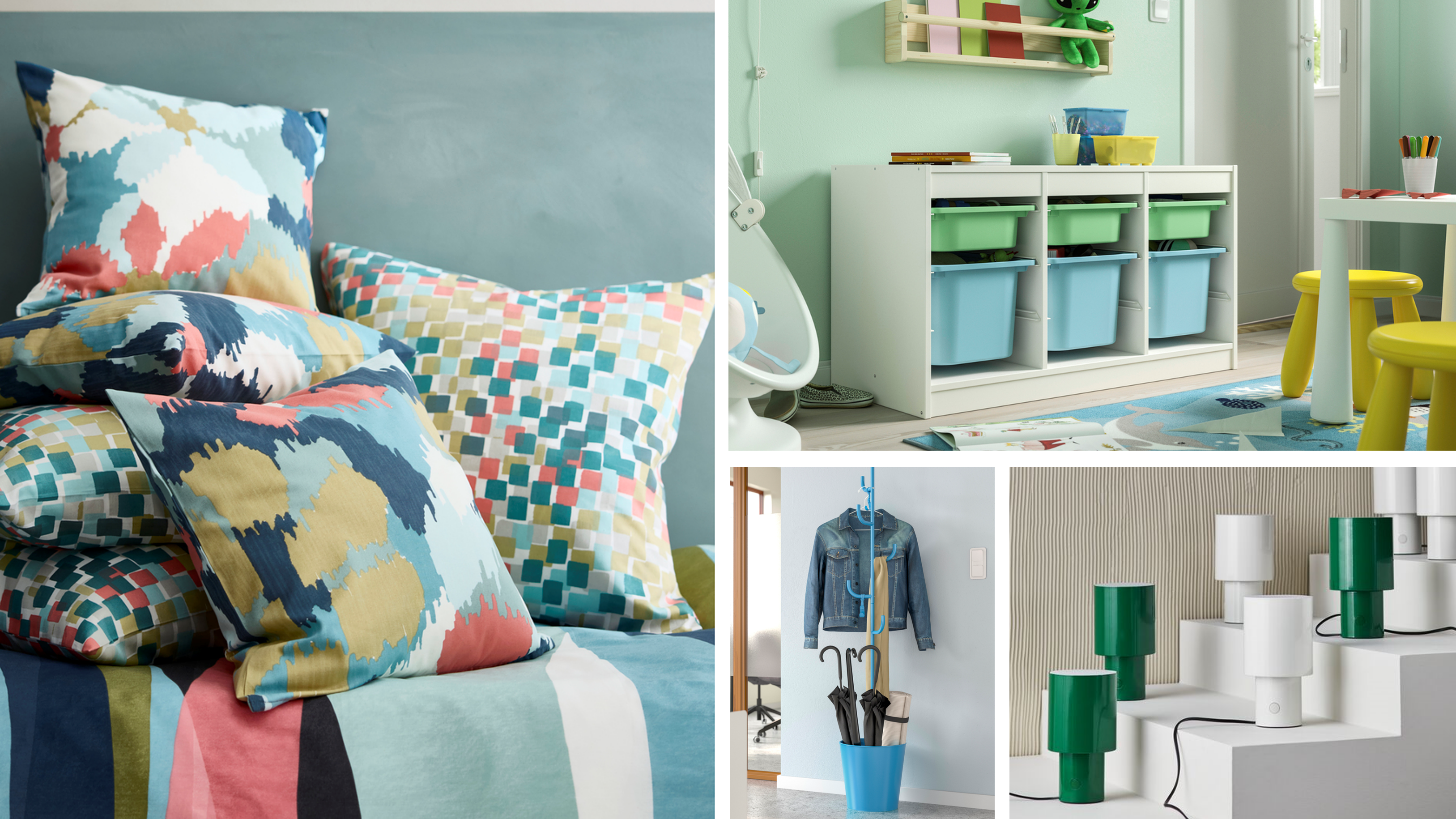 いよいよ本格的な寒さの到来を感じる1月。特にスウェーデンの長い冬には、春の訪れを待ち望む声も多く聞かれる季節です。イケアの1月の新商品では、季節を先取りできるカラフルで遊び心のあるベッドルームのアイテムを幅広く揃えています。ベッドルームを心地さや穏やかさを感じる空間に変え、暮らしのエネルギーチャージする場所にするための演出をサポートします。やさしい光を上下に拡散してムードを演出するテーブルランプや、少し大胆ながらもやさしくエレガントなデザインでお部屋をモダンに彩る掛け布団カバーや枕カバー、色あそびが楽しいクッションカバー。さらには、大容量の収納を備えたキャスター付きの引き出しユニットや工夫次第でさまざまな活用ができるポールハンガーなど、イケアらしいデザインと機能性を備えた390点以上の商品が登場します。