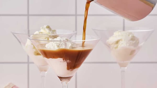 - 커피를 아이스크림 위에 붓습니다.