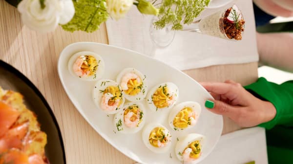 새우와 딜을 곁들인 데빌드 에그