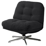 A living-room corner with a golden-brown HAVBERG swivel armchair beside a large window with STENFRÖ sheer curtains.