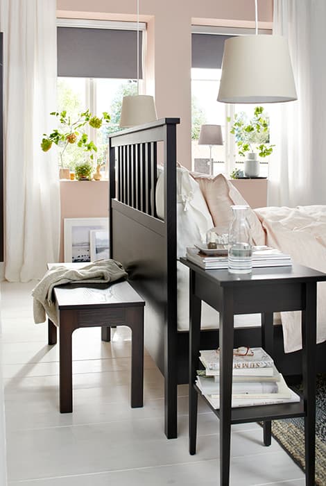 En bois massif au charme rustique, voici le cadre de lit idéal pour créer une atmosphère chaleureuse dans la chambre à coucher. Ajoutez à cela des draps tout doux, des rideaux légers et une garde-robe ouverte et créez un espace confortable, pour dormir comme vous l’aimez.