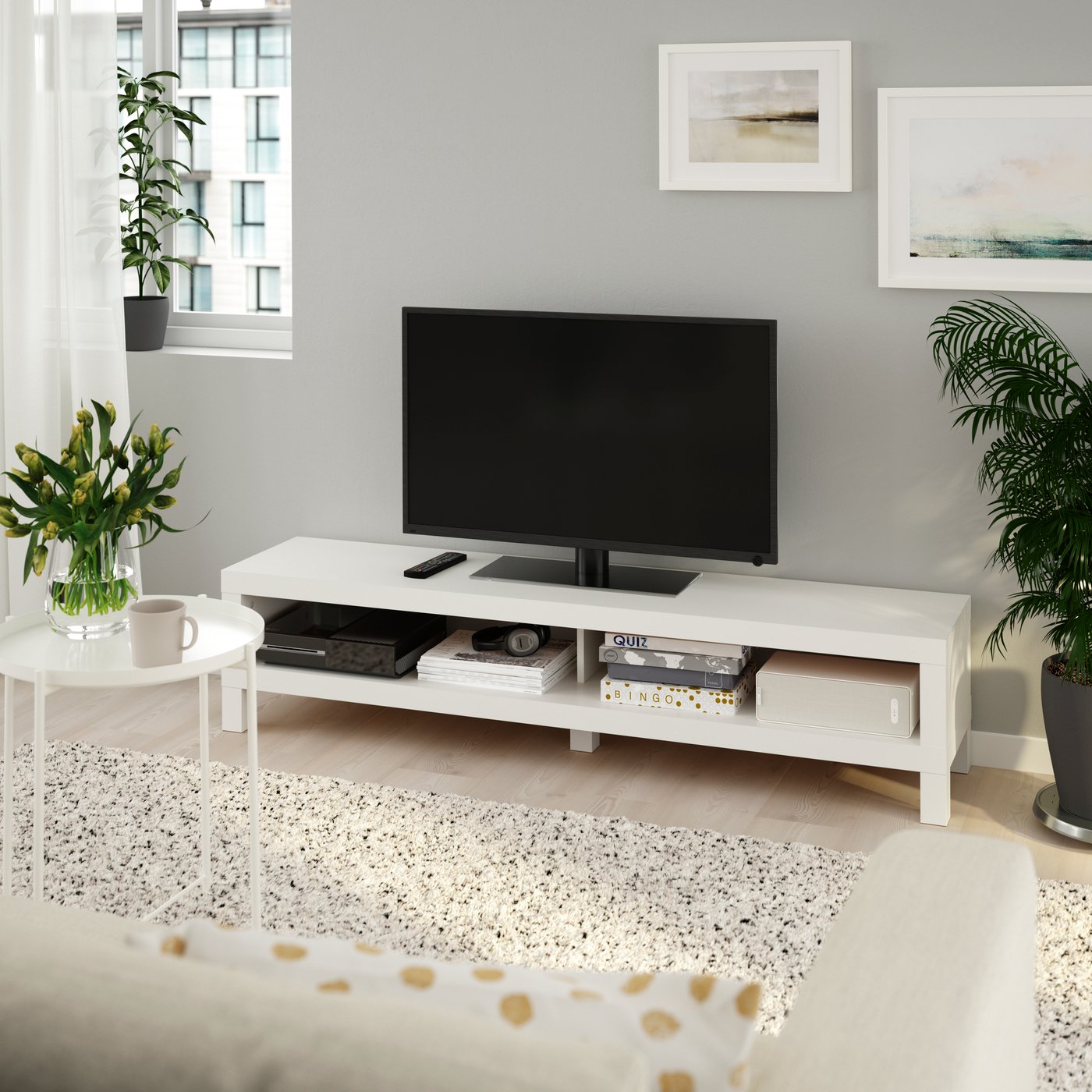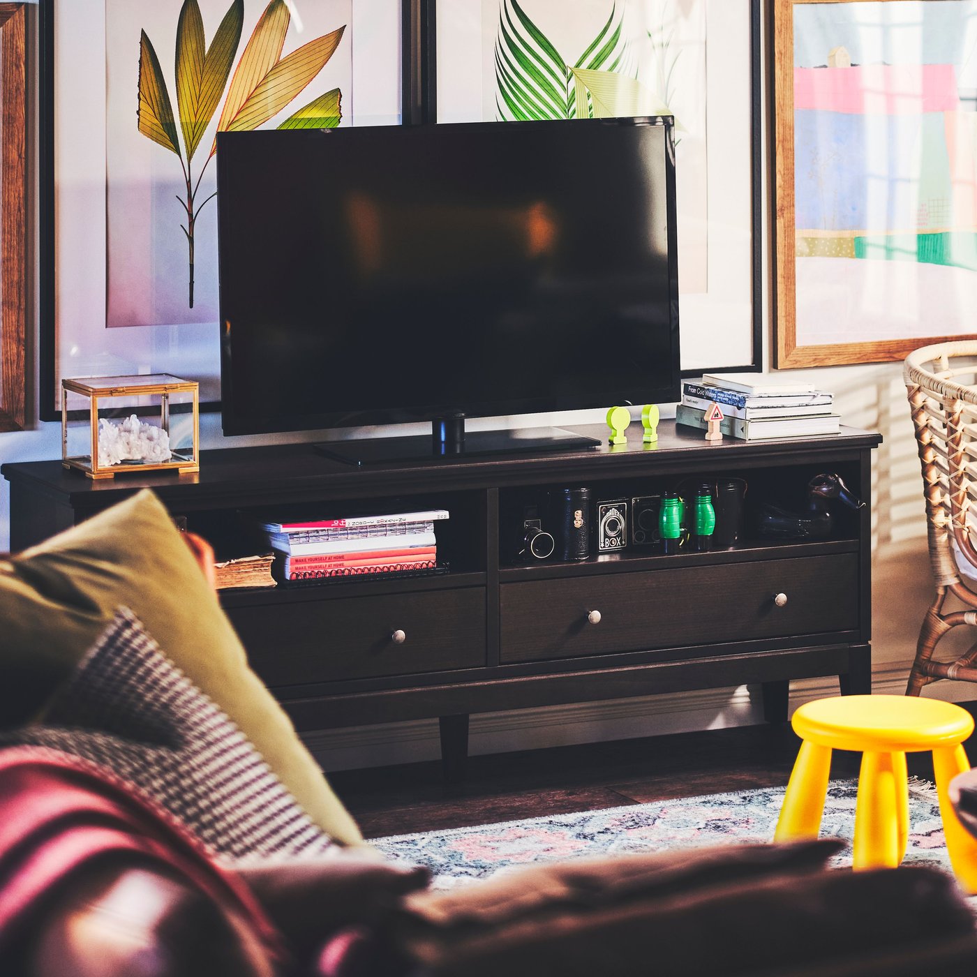 Hemos recorrido un largo camino para llegar desde los televisores en blanco y negro hasta las películas bajo demanda o en formato 3D. Pero una cosa no ha cambiado: la necesidad de tener un soporte o un mueble para nuestra televisión. Nuestra selección ayuda a reducir el desorden, mientras tú embelleces el resto de tu sala con coloridos cojines y tapetes. Así que relájate en tu sofás o sillones y disfruta de tu TV.