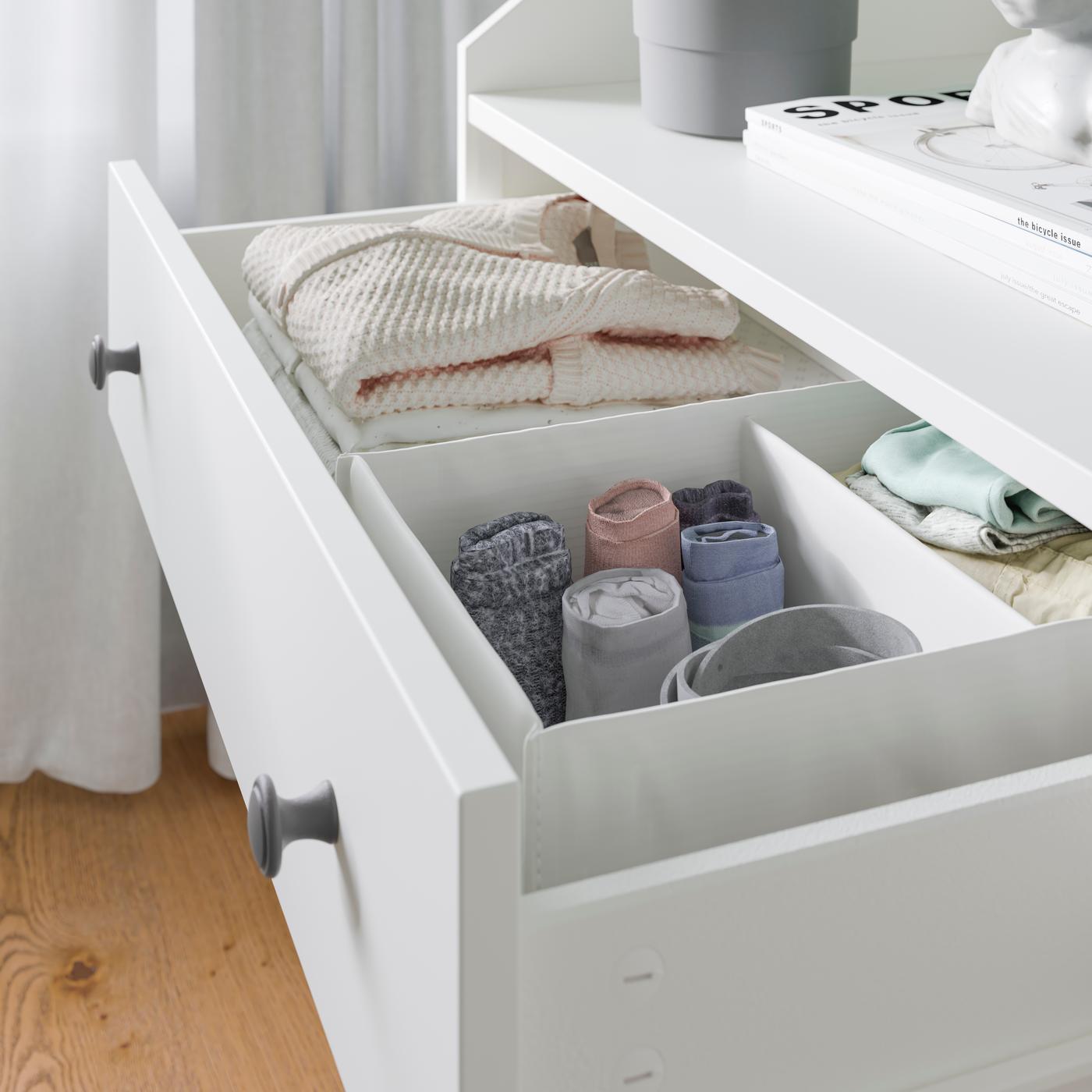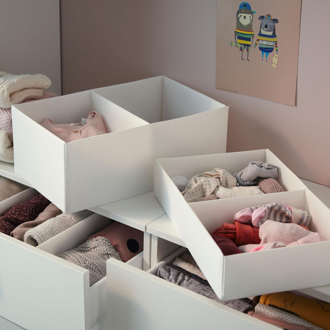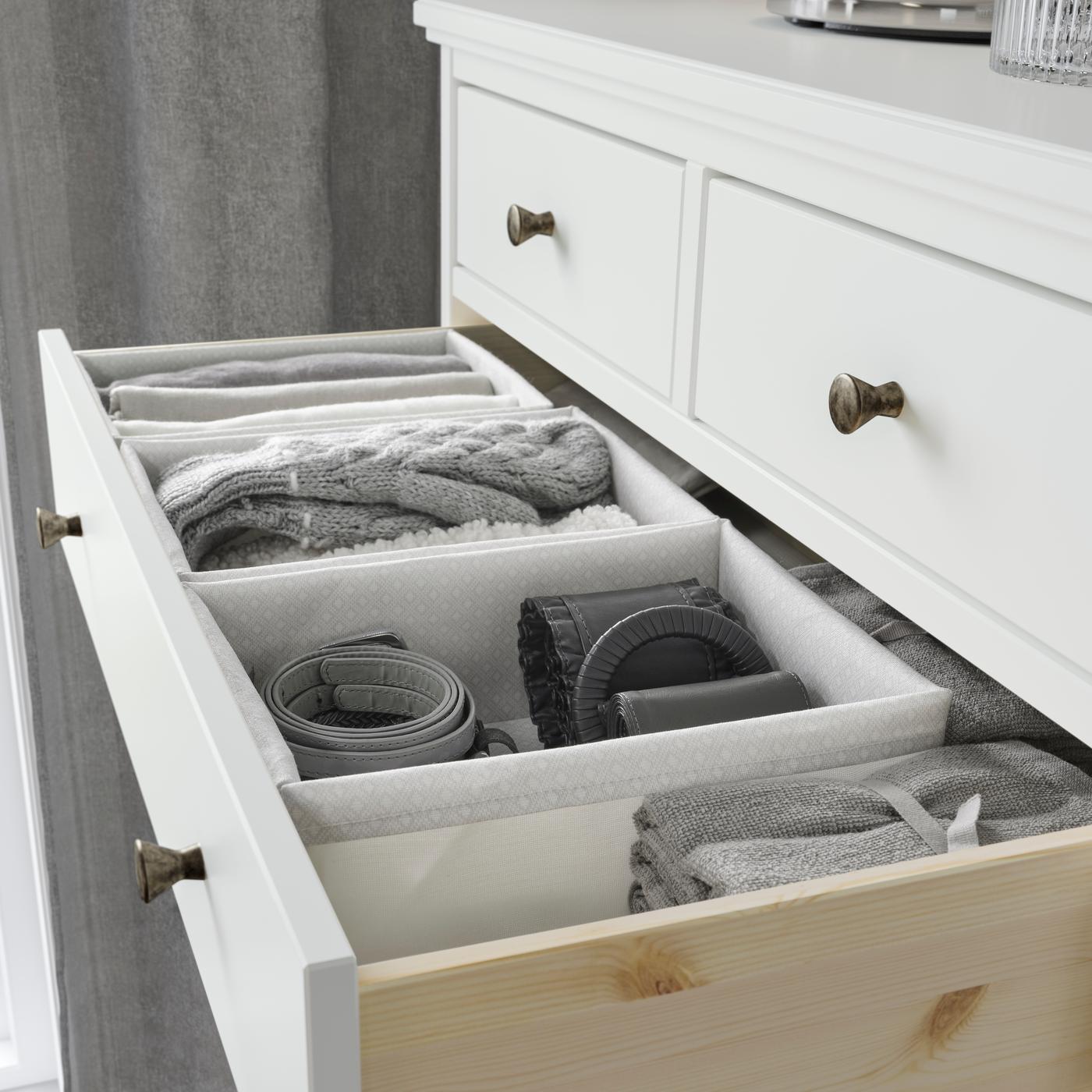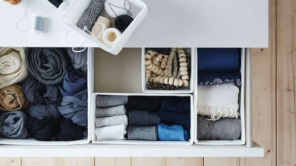 Storan yang sesuai dengan anda. Temui segala-galanya dengan pantas dengan kotak, bakul dan penyusun atur yang dibuat agar sepadan dengan dimensi almari pakaian PAX anda.