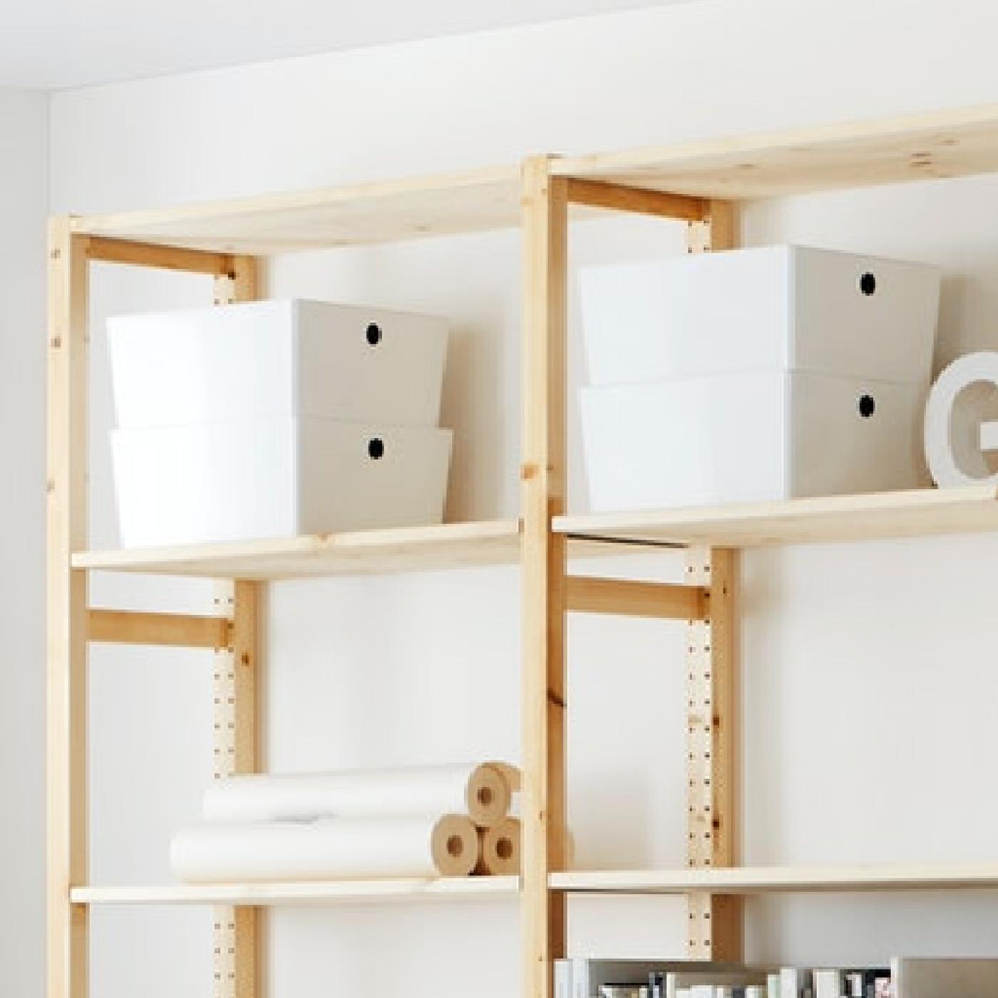Storan semula jadi yang tahan lasak. Dibuat daripada kayu pain padu, IVAR semakin lama semakin cantik dan berpasangan indah dengan kotak, bakul dan fail majalah.