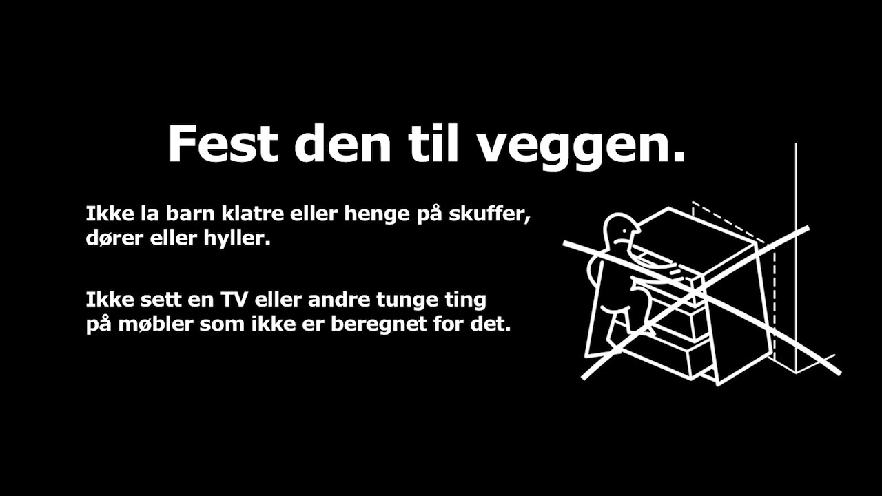 Aldri sett en TV eller andre tunge gjenstander på kommoder eller andre møbler som ikke er ment for TV-er eller andre tunge gjenstander.