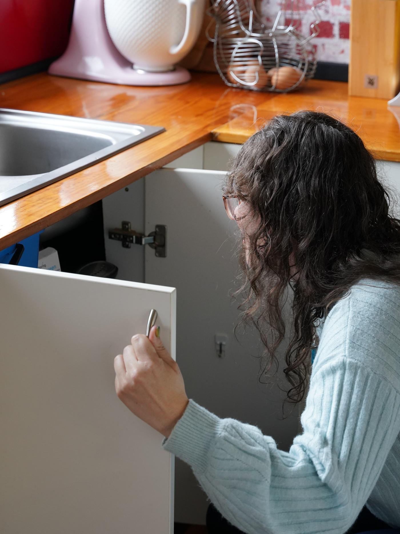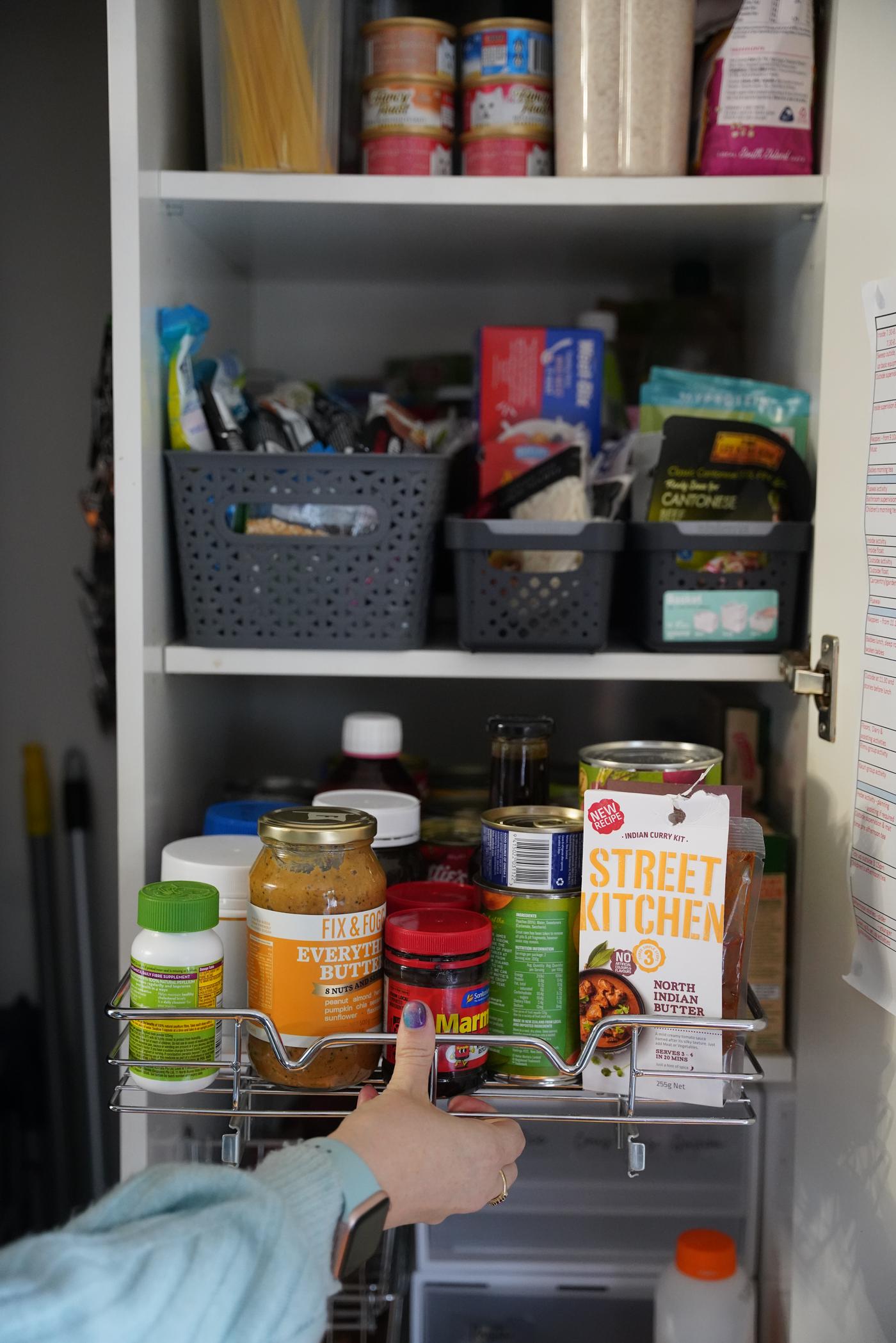 “We had to get creative with the pantry and cupboards. You’ll see we’ve put in these pull-out shelves so that we don’t have to reach far back in to get what we need, and it just makes the process efficient.” – Justine