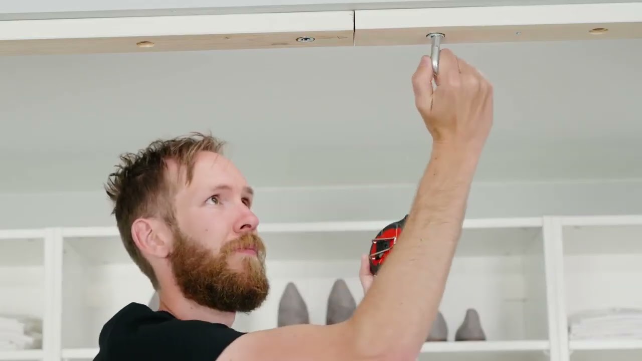 Pamiętaj, że drzwi muszą nachodzić na siebie w stopniu nie mniejszym niż 2.5 cm. Aby zachować symetryczny wygląd i łatwość dostępu do szafy, zalecamy, aby drzwi nachodziły na siebie w jak najmniejszym stopniu. Im większy otwór, tym łatwiejszy dostęp do rzeczy przechowywanych za drzwiami.