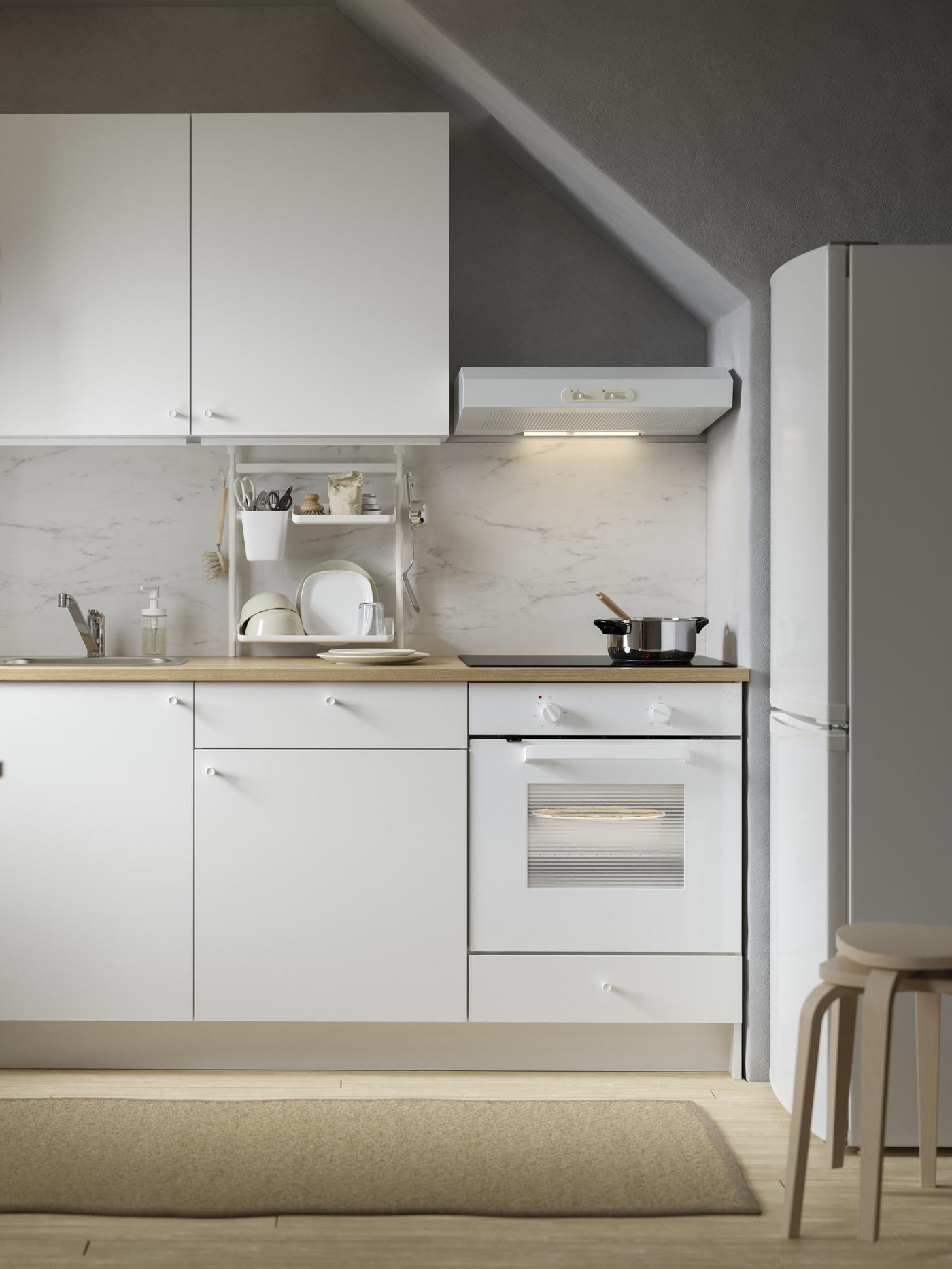 Urządzanie kuchni na poddaszu ze skosem nie musi wiązać się z koniecznością zamawiania mebli kuchennych na wymiar, które zazwyczaj są droższe od standardowych zestawów. Umiejętne wykorzystanie różnego typu szafek kuchennych czy regałów modułowych może pozwolić na uzyskanie równie funkcjonalnego efektu. Przykładem mogą być meble kuchenne IKEA, które można dopasować do każdego rodzaju pomieszczenia zarówno w małej, jak i przestronnej kuchni. Kuchnie IKEA dostosujesz do swoich preferencji, niezależnie czy zdecydujesz się na styl tradycyjny, nowoczesny, rustykalny czy skandynawski.