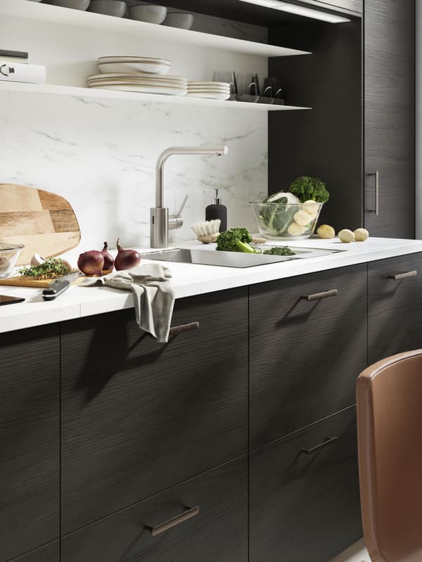 - Jeśli cała zabudowa znajduje się na jednej ścianie, zlewozmywak powinien być na środku.