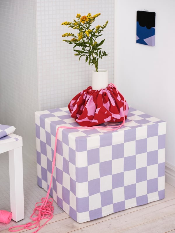 IKEA wychodzi naprzeciw wszystkim, którzy marzą o wnętrzu z charakterem i przygotowała instrukcję szycia osłony na wazon, dostępną w formacie PDF. Pierwszym krokiem jest wybór tkaniny. Kolekcja Tyg oferuje szeroki wachlarz wzorów, które zaspokoją gusta każdego. Miłośnicy żywych kolorów z pewnością zakochają się w tkaninie TAGGKÖRVEL, podczas gdy zwolennicy stonowanych barw docenią piękno RAKLOSTA. Co dalej? To banalnie proste! Wystarczy wyciąć okrągły kawałek materiału, wszyć ściągacz w brzeg i nałożyć na wazon. Voila! Wazon zyskał niepowtarzalną oprawę!