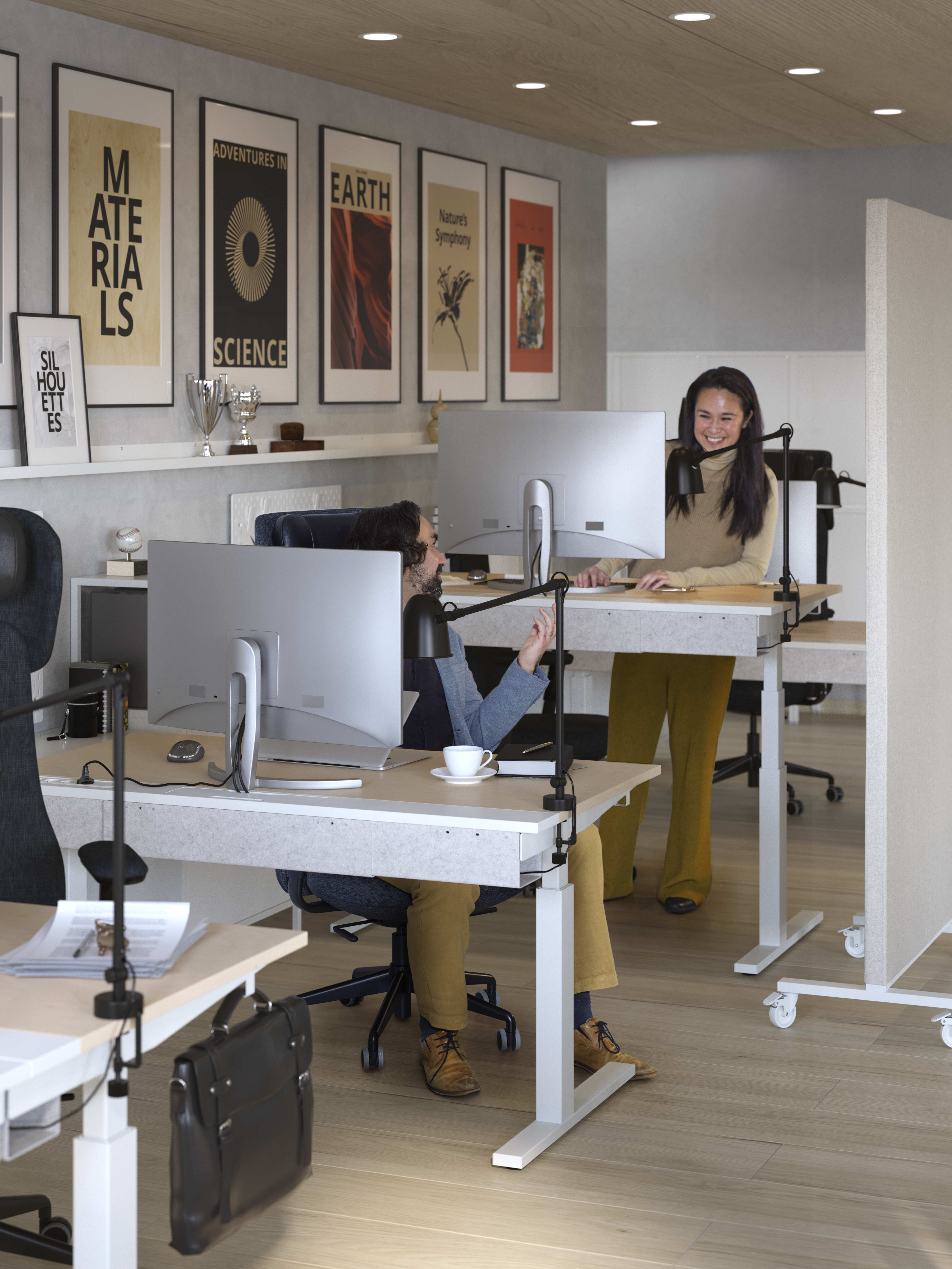 Biuro urządzone w sposób ergonomiczny powinno wspierać produktywność i dobre samopoczucie pracowników zapewniając im nie tylko komfort fizyczny, ale też psychiczny oraz dopasowywać się do współczesnego modelu pracy. System MITTZON został stworzony z elastycznością w centrum uwagi. Obejmuje produkty, które uzupełniają się, aby wesprzeć różne środowiska biurowe - od nieformalnych, krótkich spotkań, poprzez bardziej strukturalne działania wymagające współpracy, aż po indywidualną, skoncentrowaną pracę.