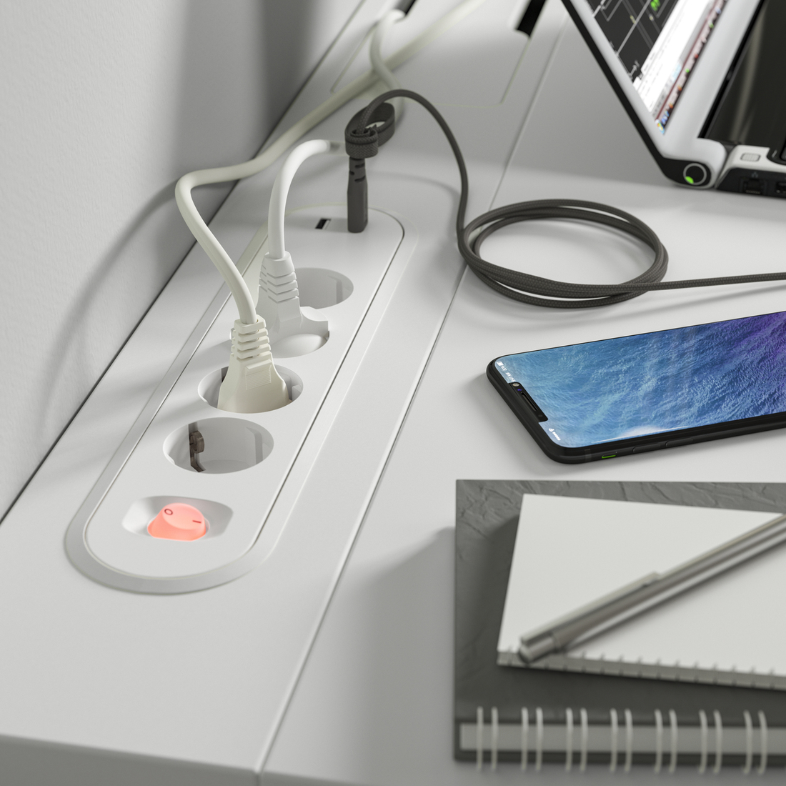 Stół na kółkach MITTZON jest idealny do przestrzeni przeznaczonych do pracy zespołowej lub sali konferencyjnych, które wymagają łatwego dostosowania do różnych potrzeb. Wbudowany podnóżek zapewnia podparcie nóg podczas długich spotkań lub rozmów telefonicznych, a haczyk po każdej stronie pozwala zawiesić torbę albo słuchawki w zasięgu ręki.
