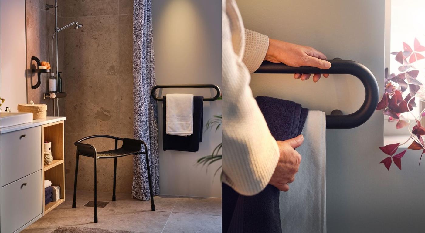 Domowe scenariusze bywają nieprzewidywalne. Seria BÄSINGEN powstała z myślą o chwilach, w których niezależność wymaga wsparcia. Znalazły się w niej między innymi schodki z poręczą – w wersji jednostopniowej i dwustopniowej – które ułatwiają sięganie po rzeczy na górnych półkach w łazience, kuchni czy garderobie. Gdy nie są w użyciu, spokojnie mogą służyć jako pomocniczy stolik przy wannie, podnóżek w kąciku do czytania lub stojak na rośliny. To przedmioty, które dopasowują się do potrzeb i wystroju wnętrza.