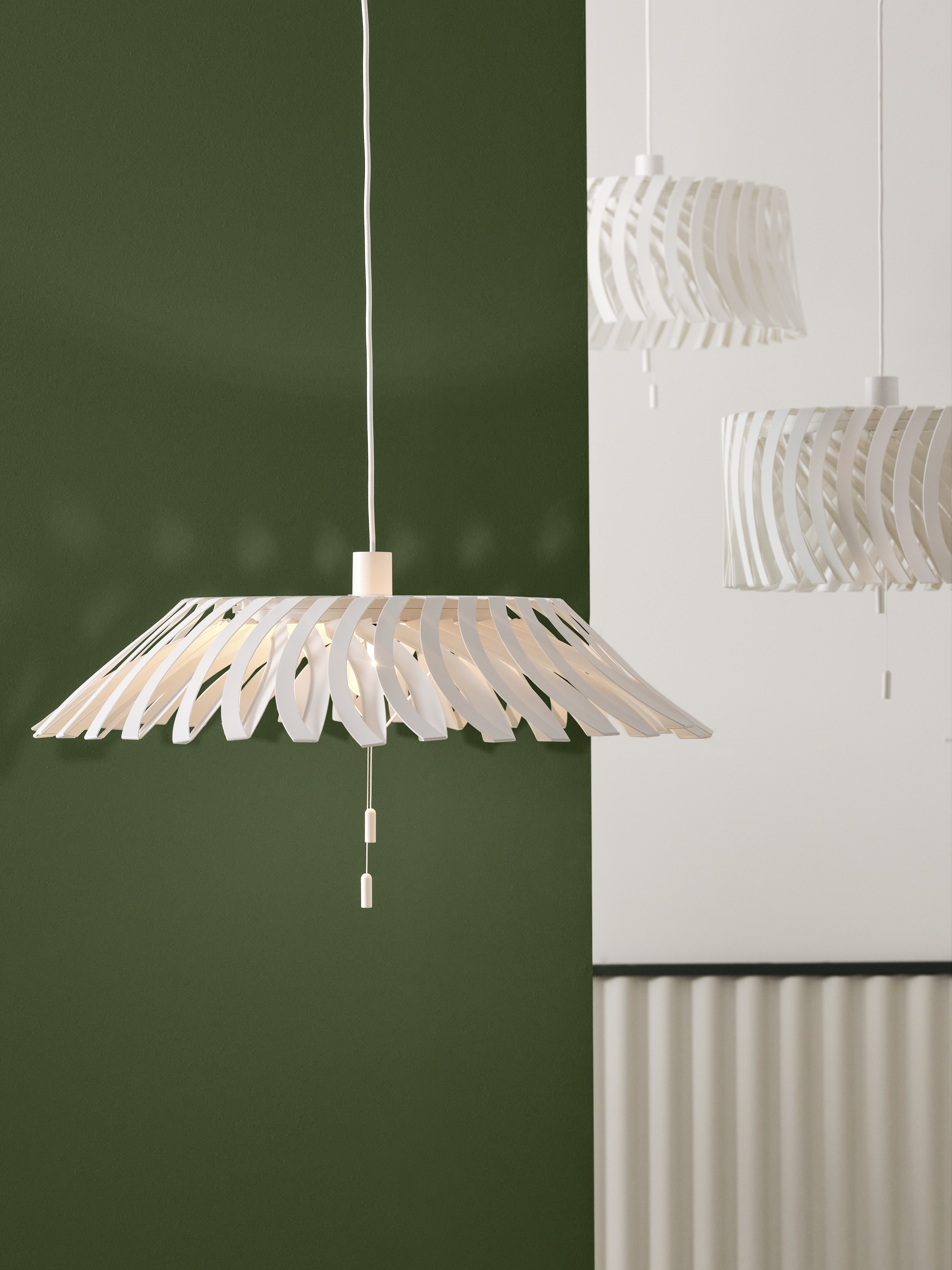 Wisząca lampa YTLÄGE wyraża istotę współczesnego designu. Jej prosta forma emanuje spokojem i czystością. Lampa rozświetli pokój przytłumionym światłem, wprowadzając do niego ciepło i przytulność. Ale wystarczy pociągnąć za sznurek, by zmienić atmosferę. Klosz otworzy się niczym kwiat, a światło wypełni wnętrze.