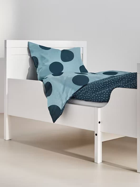Łóżko dziecięce z barierką dla chłopca to opcja dla małych mężczyzn, którzy dostali pierwsze dorosłe łóżko i potrzebują dodatkowego zabezpieczenia przed wypadnięciem. Kolor takiego łóżeczka dla chłopca ma prawo być uniwersalny, częstym wyborem jest klasyczna biel lub surowe drewno. Niemal każde łóżko dla chłopca Ikea ma szuflady na <18776>pościel dla dzieci<> lub inne dziecięce skarby. To niewątpliwie wygoda, ale warto sprawdzić, czy przed łóżkiem do pokoju chłopca jest dość miejsca, by je odsunąć. Jeśli szuflad nie ma, a jest na nie miejsce, można dokupić pojemniki pod łóżko.