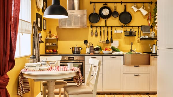 W jaki sposób przytulnie urządzić kuchnię z jadalnią czy salonem? Przy większym metrażu można pokusić się o wyznaczenie granicy pomiędzy tym strefami za pomocą wyspy kuchennej. Zyska się w ten sposób blat roboczy, miejsce do przechowywania kuchennych akcesoriów i zastawy, zmywania czy gotowania i spożywania posiłków. Warto poznać pomysły IKEA na urządzenie mniejszego lub większego aneksu kuchennego, aby przekonać się, że urządzanie wydzielonych pomieszczeń może być kreatywnym wyzwaniem!