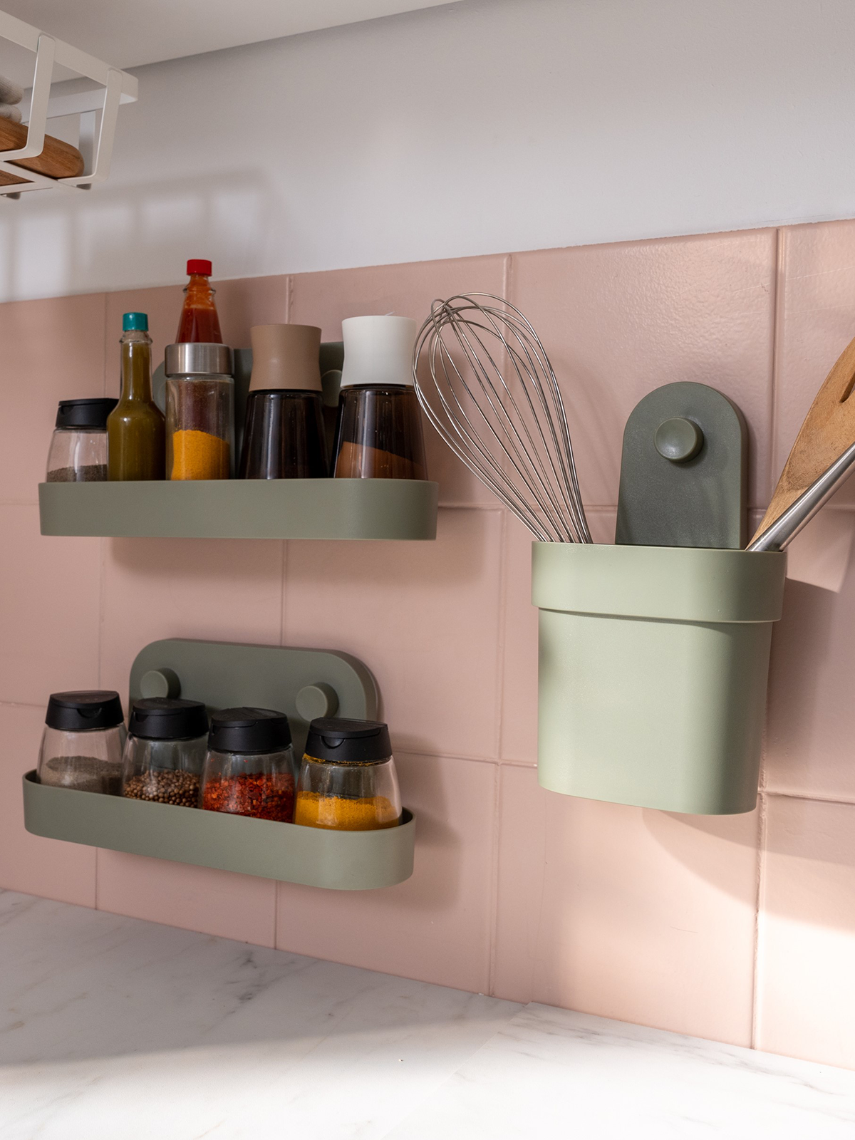 Szafki, szuflady, półki, drzwi, zawiasy z amortyzatorami, blaty, uchwyty, nogi, cokoły, panele maskujące, listwy dekoracyjne.