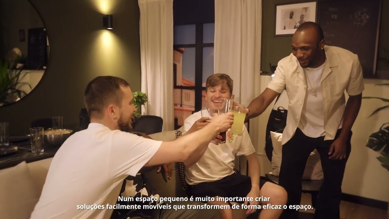 O Victor e o Aliu partilham casa e são verdadeiros fãs de futebol. Ter lugar para os convidados é essencial, quer seja para ver campeonatos ou para jogar videojogos.