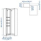 يمكنك الاستفادة من كل المساحة في الزاوية عندما تقوم بدمج هذه الوحدة مع هياكل PAX الأخرى. يمكنك الحصول على تخزين مفيد لتعليق ملابسك وملحقاتها أو طيها أو عرضها.