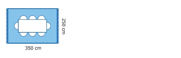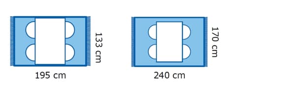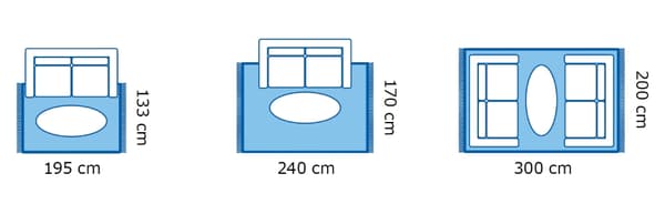 Avantajul unui covor mare (aproximativ 200×300 cm), care are loc pentru o combinație întreagă de articole pentru șezut, este că lasă impresia de unitate și confort. O altă posibilitate este un covor de dimensiuni medii (aproximativ 170×240 cm), peste care poți pune marginile frontale ale canapelei și fotoliilor.
