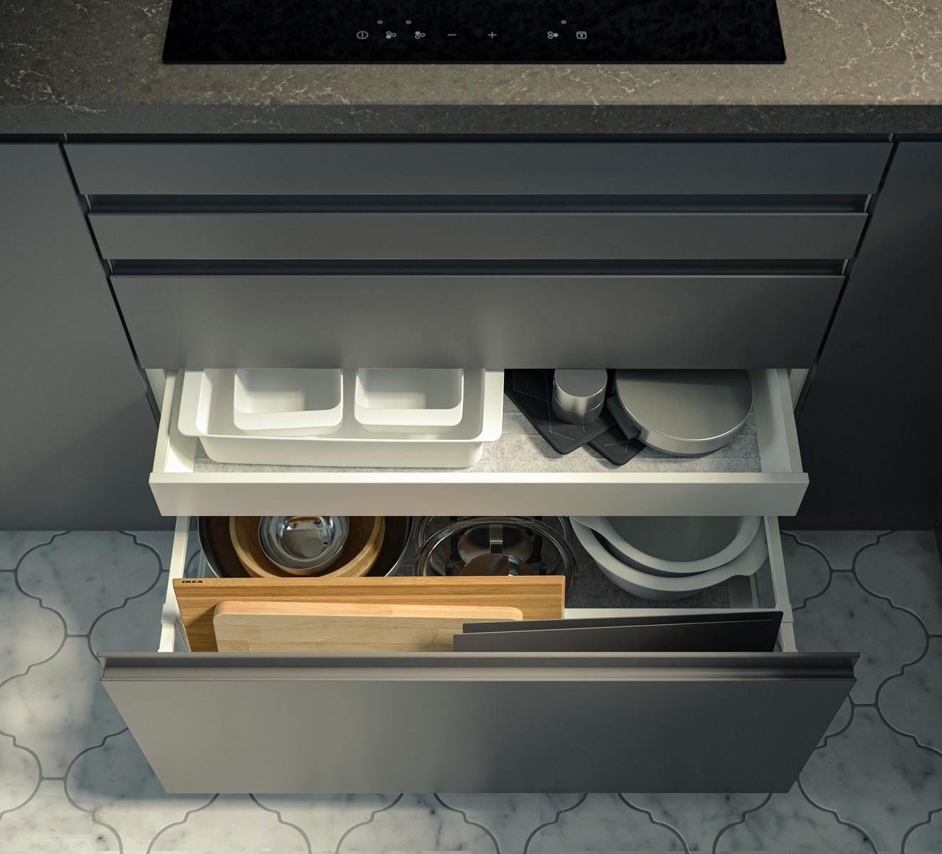 VOXTORP brings an open, modern look to your kitchen - featuring clean lines, smooth doors, and a minimalist expression with integrated handles.