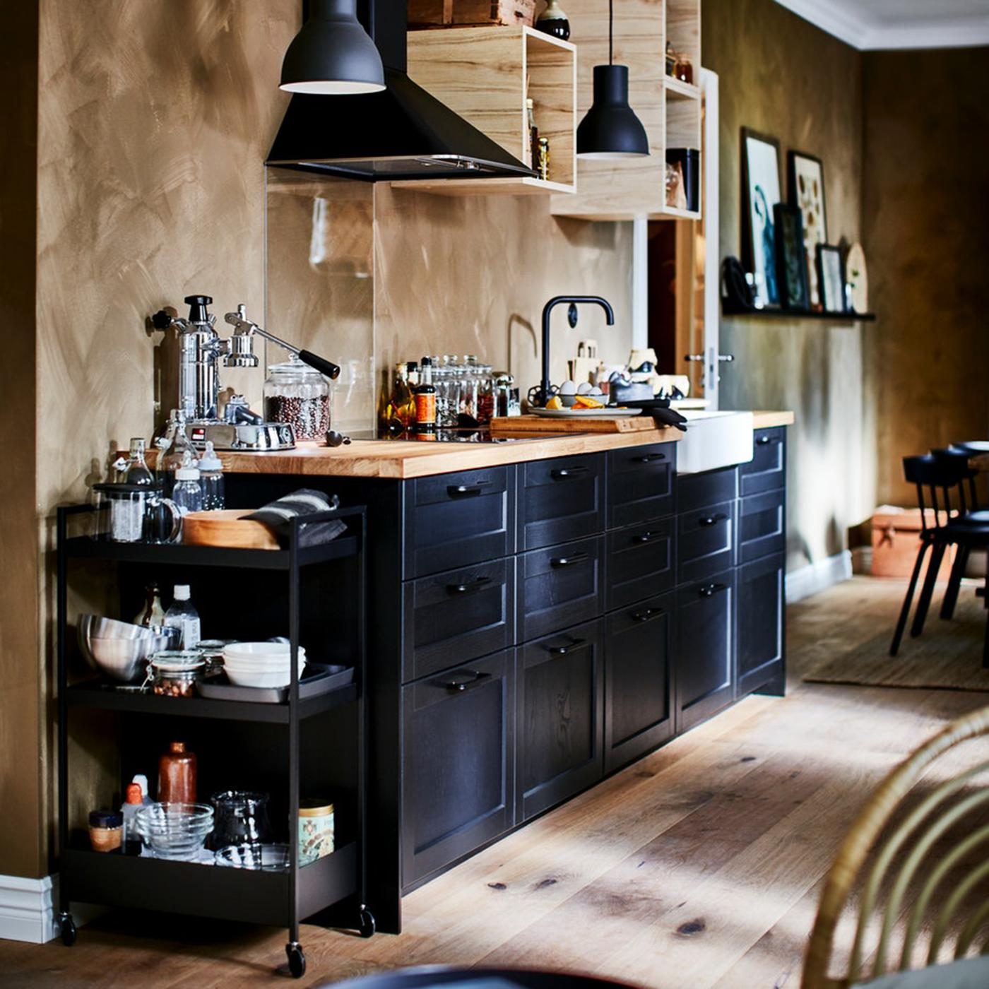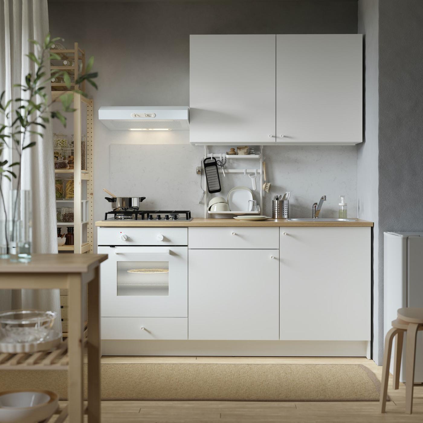 VEDDINGE white is a smooth, sleek door that brings a bright and modern expression to your kitchen. Want to do changes before installing this kitchen? Reach out to our specialists in-store or via email to customise according to your house's layout.