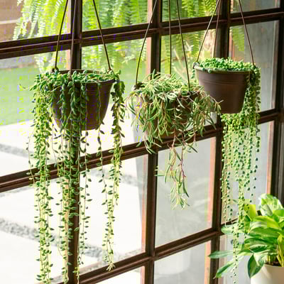 Plenty of potted plants can thrive where you place them, so it comes down to exploring your personal preference. If you want something low maintenance, succulents are a good choice as they rarely need watering. A lack of direct sunlight in your home could call for something like the dragon tree. For decorative purposes, you may consider impressive climbing vines, that you could style across a floating shelf. There's a hugely diverse range of potted plants and flowers that you can bring into your home from the IKEA range. Discover your personal taste when it comes to colors, fragrances and levels of maintenance required.