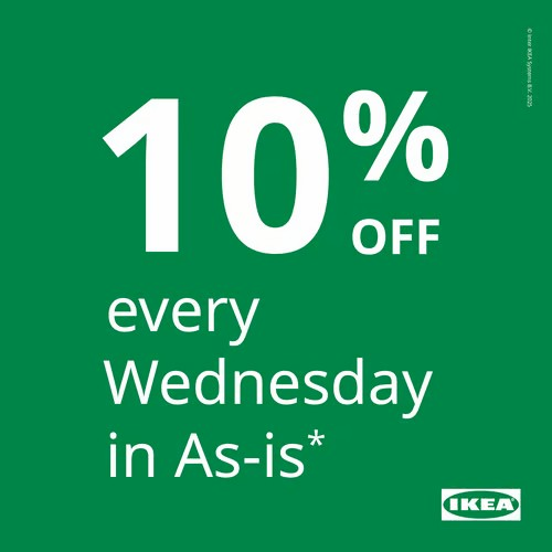 Every Wednesday, IKEA Family members receive 10% off already marked-down merchandise in our As-is department. Just scan your IKEA Family card at checkout and enjoy the savings!